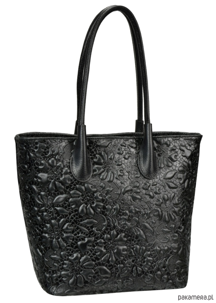Elegancka torba ze skóry naturalnej, wytłaczana w kwiaty, idealna do codziennych stylizacji.