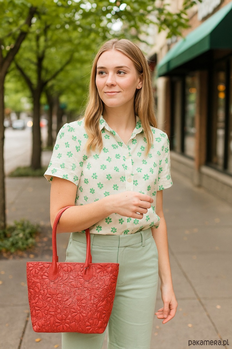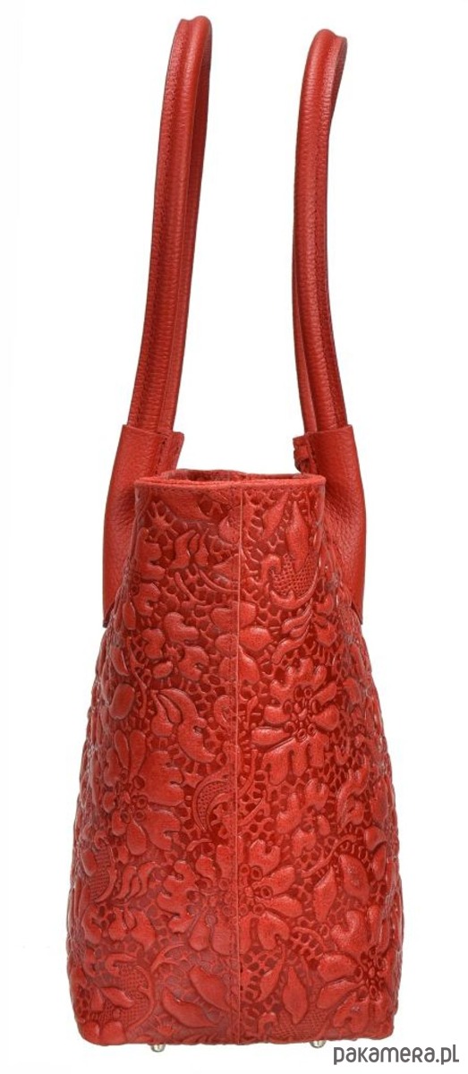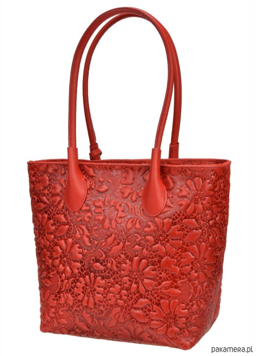 Elegancka torba ze skóry naturalnej, wytłaczana w kwiaty, idealna do codziennych stylizacji.
