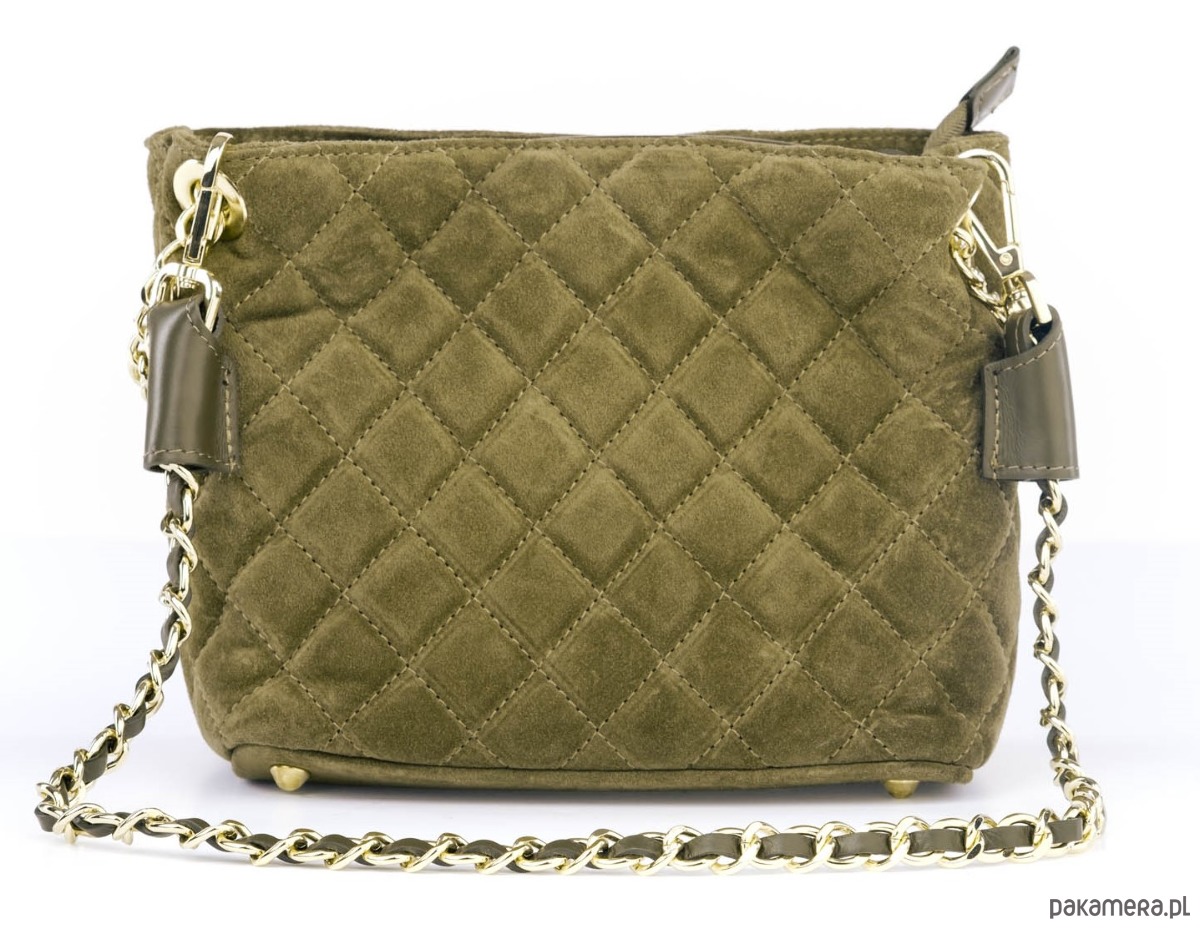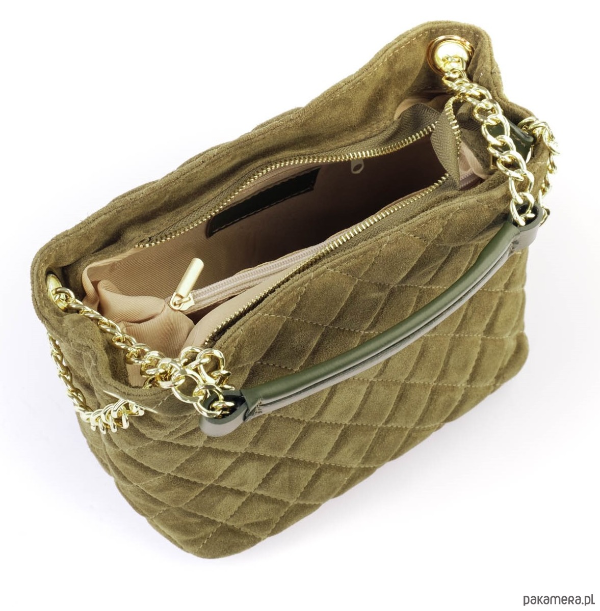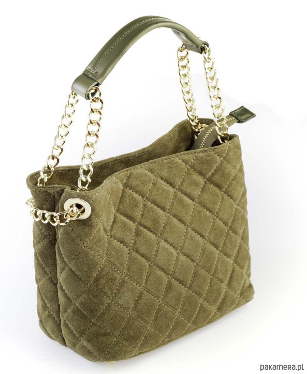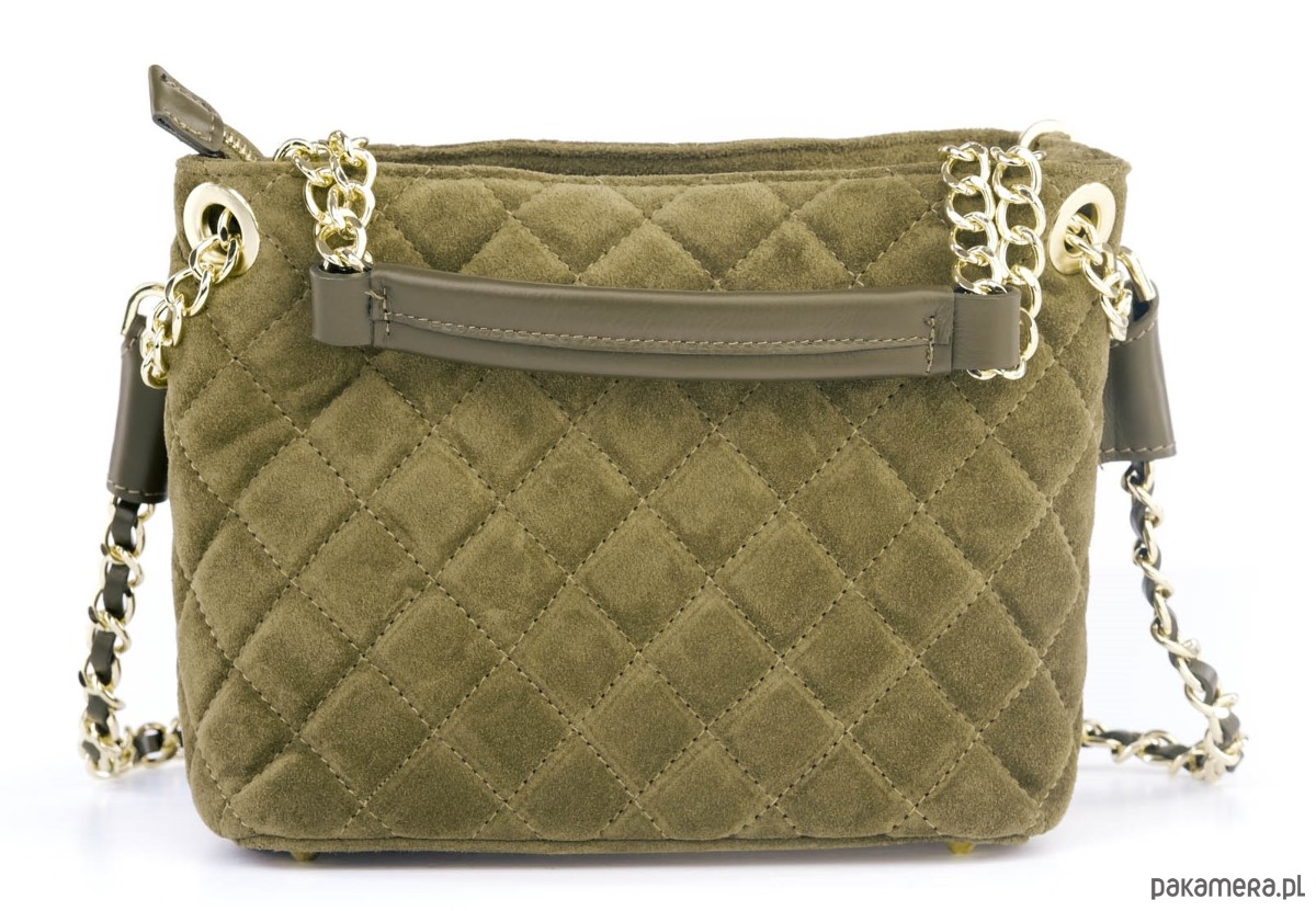 Elegancka torba ze skóry naturalnej, pikowany zamsz.