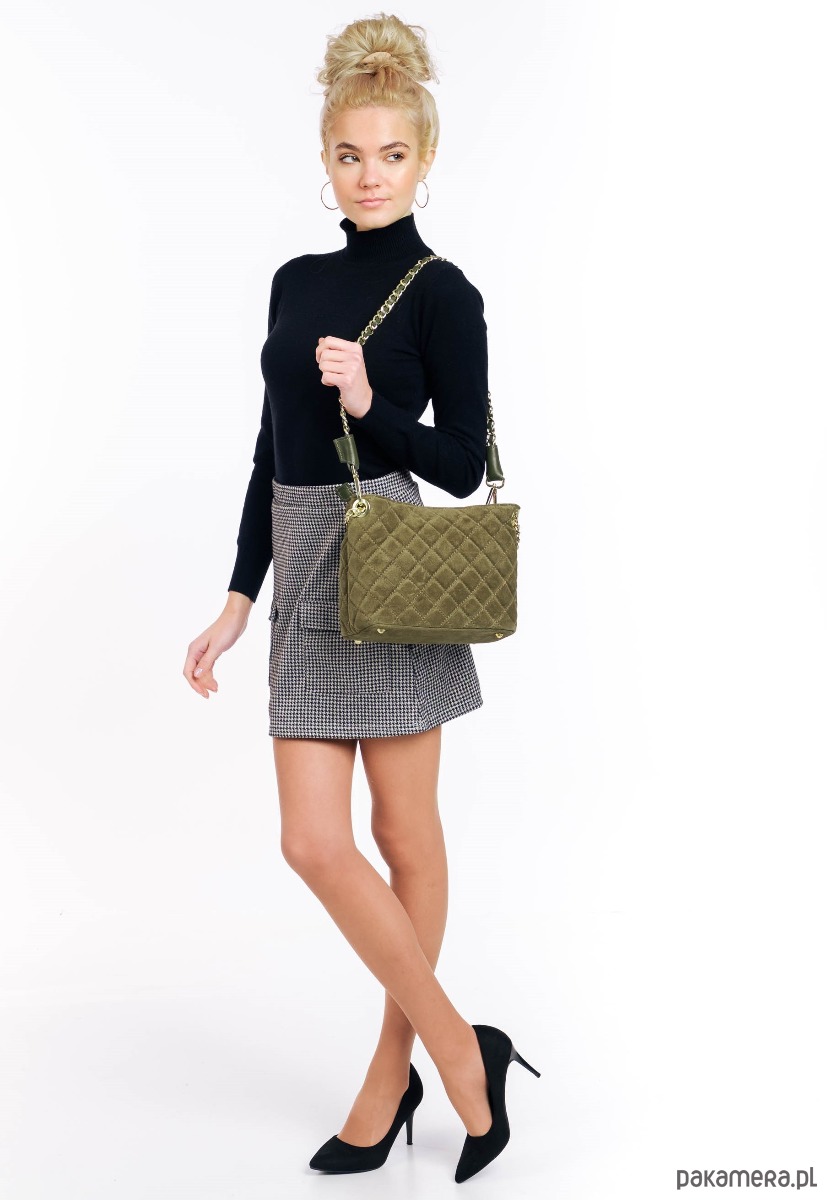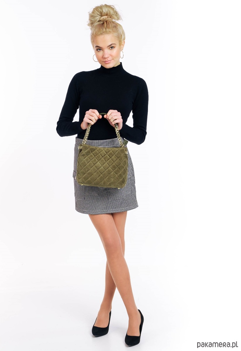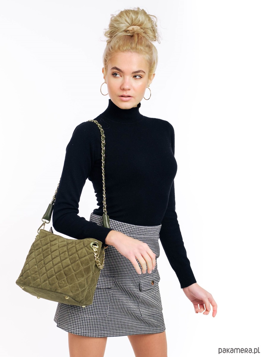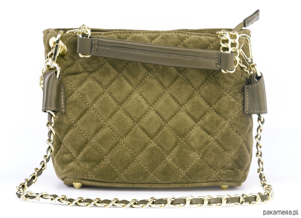Elegancka torba ze skóry naturalnej, pikowany zamsz.