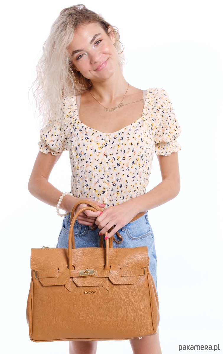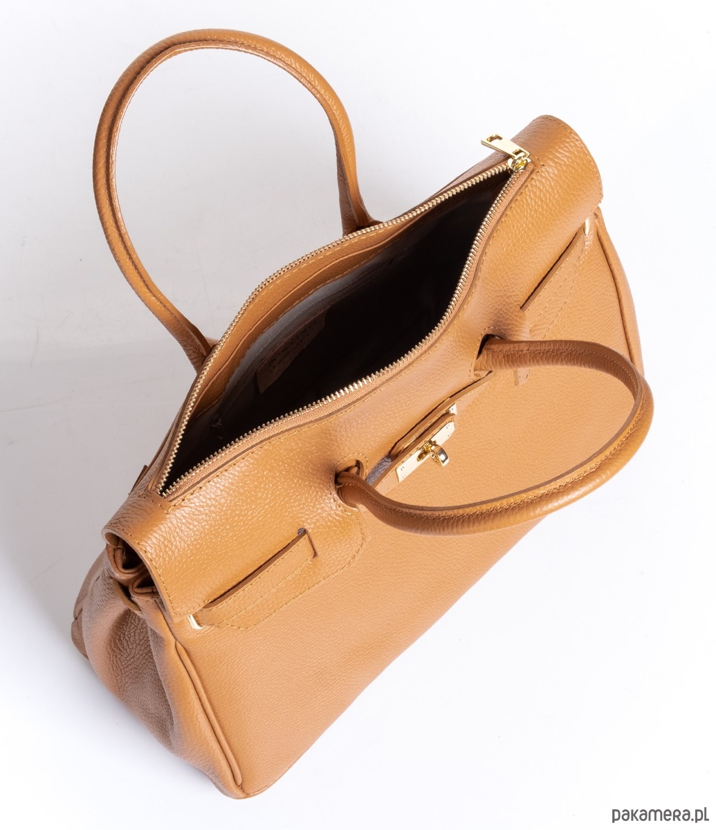 Elegancka torba ze skóry naturalnej z ozdobnym zapięciem.