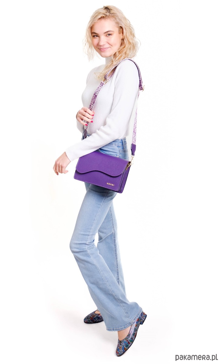 Elegancka torebka ze skóry naturalnej, z długim szerokim paskiem .