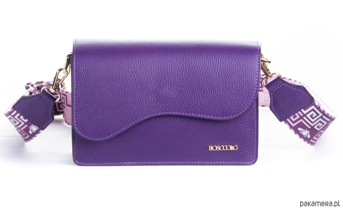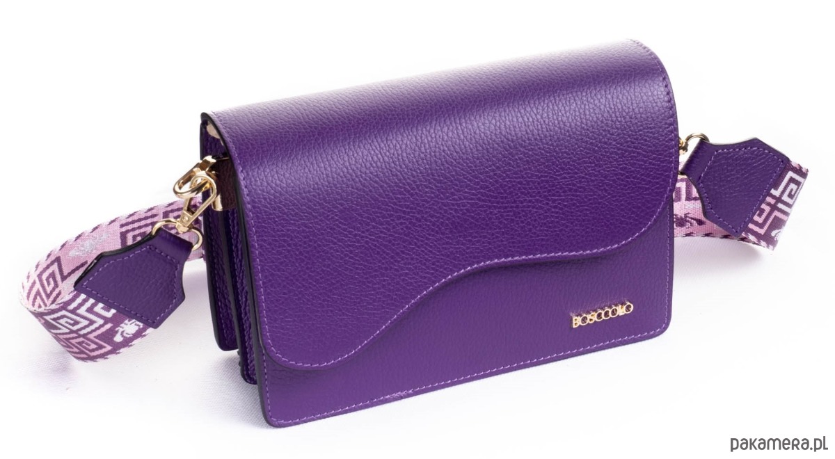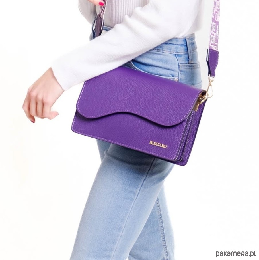Elegancka torebka ze skóry naturalnej, z długim szerokim paskiem .