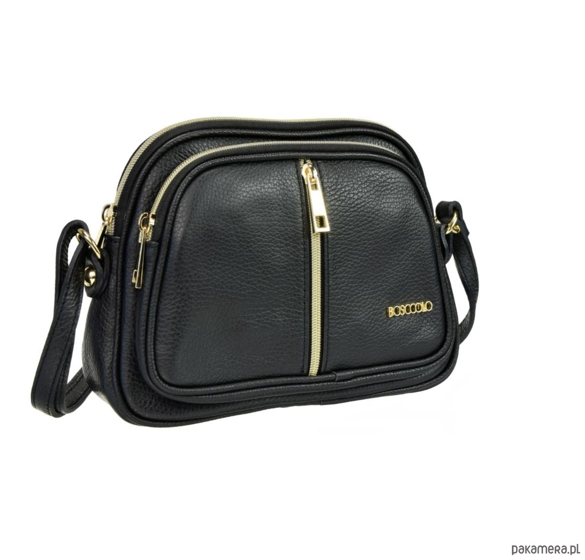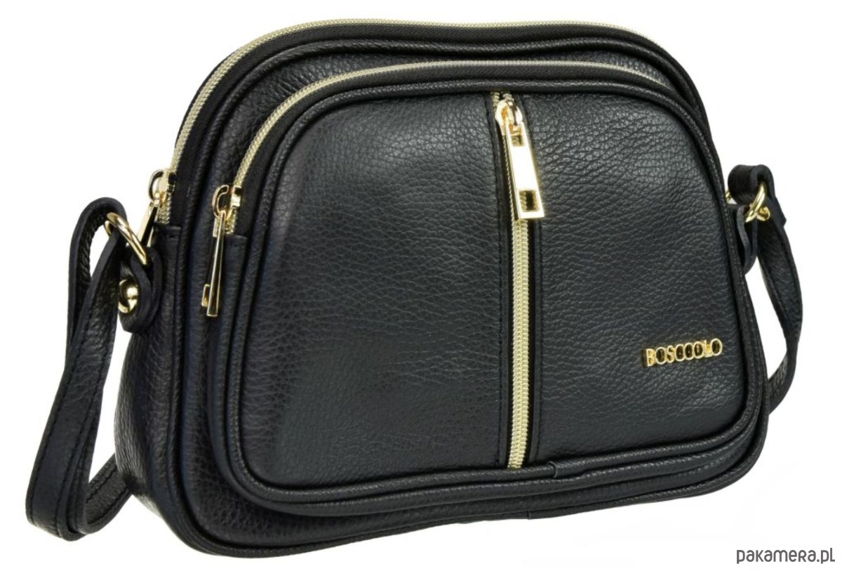 Pasek długi z regulowaną długością. Trzy osobne przegródki, każda zamykana na suwak.