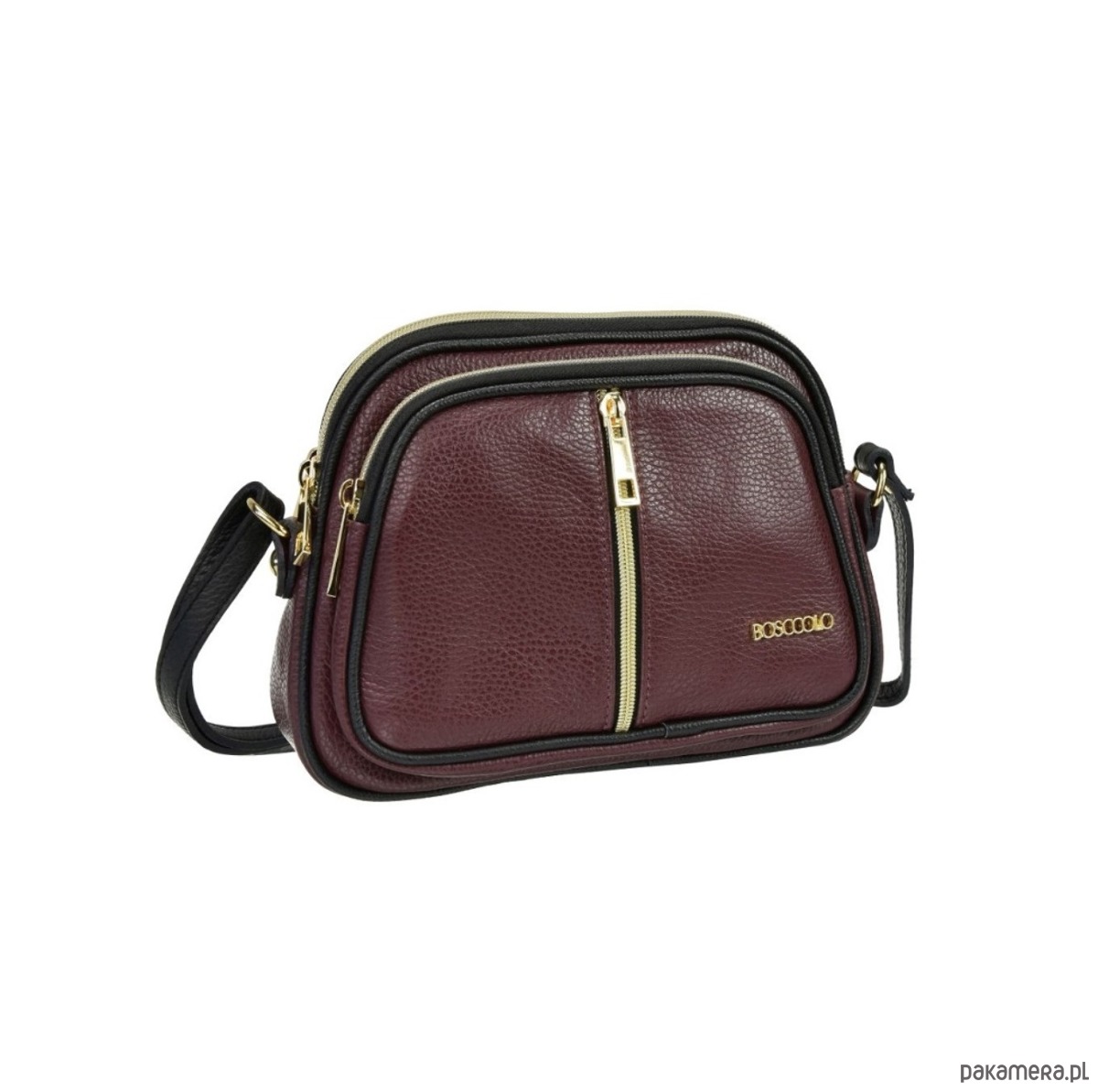 Pasek długi z regulowaną długością. Trzy osobne przegródki, każda zamykana na suwak.