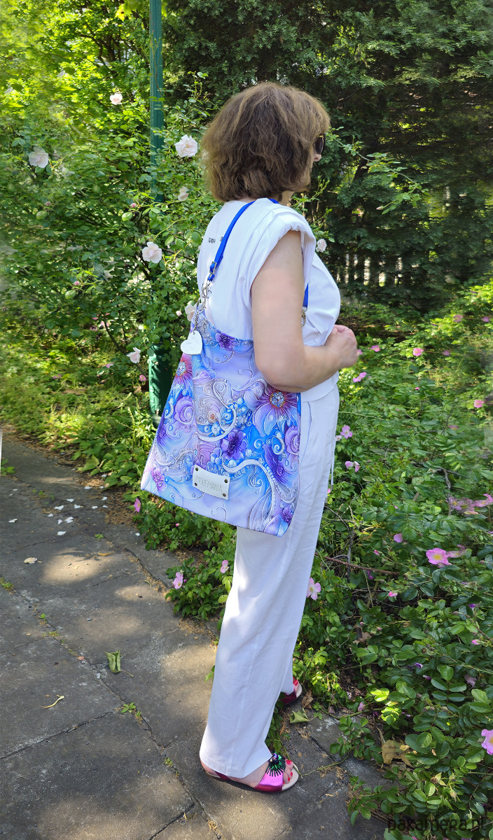 Wygodna torba miejska "Space Garden" z kolekcji wiosenno- letniej wykonana jest z wytrzymałej i wodoodpornej tkaniny w kwiaty i liście.