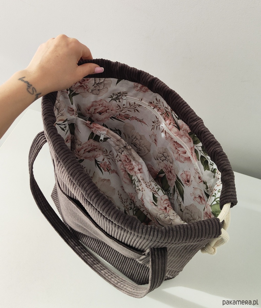 Torba SummerBag E B O N Y-duża szarobrązowa torba sztruksowa