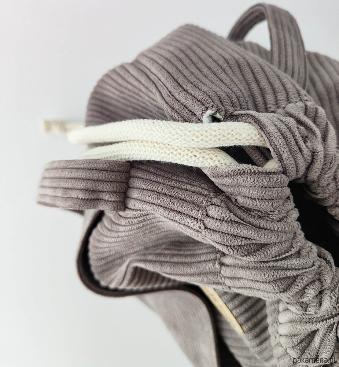 Wykonana z tkaniny Scala. Miękkiej, miłej, welurowej przypominającej sztruks.