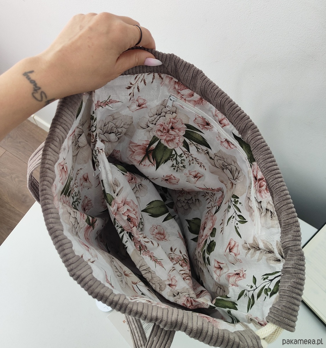 Torba SummerBag TAUPE-duża szarobrązowa torba sztruksowa