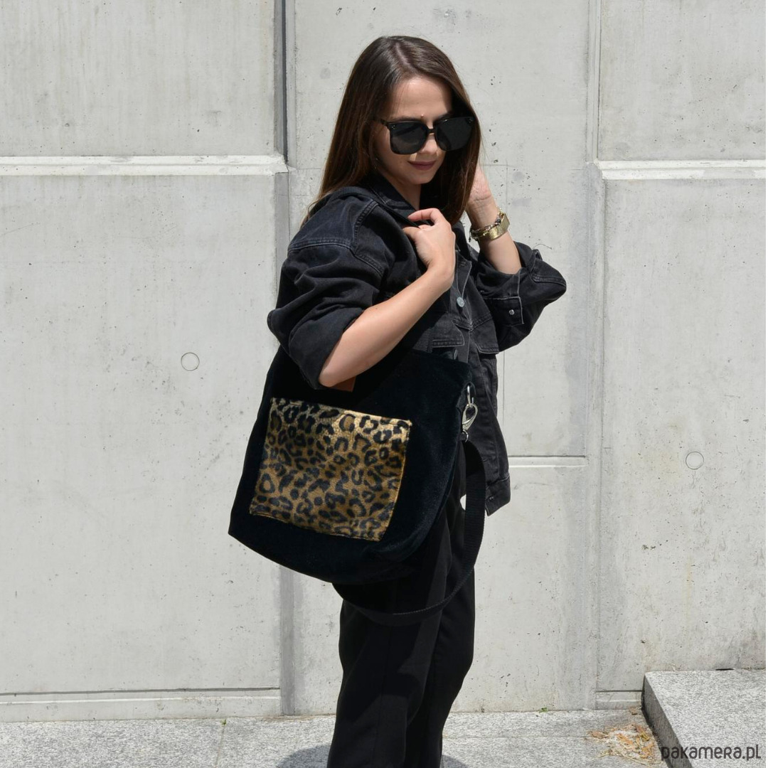 Torba szopper z weluru "Mili Chic MC6" - czarna