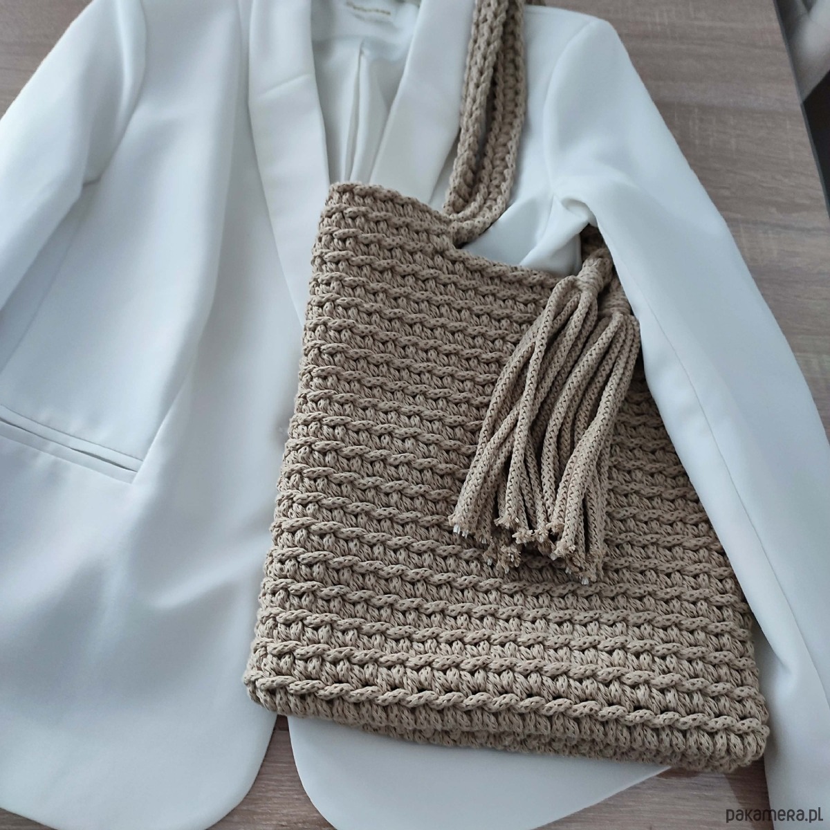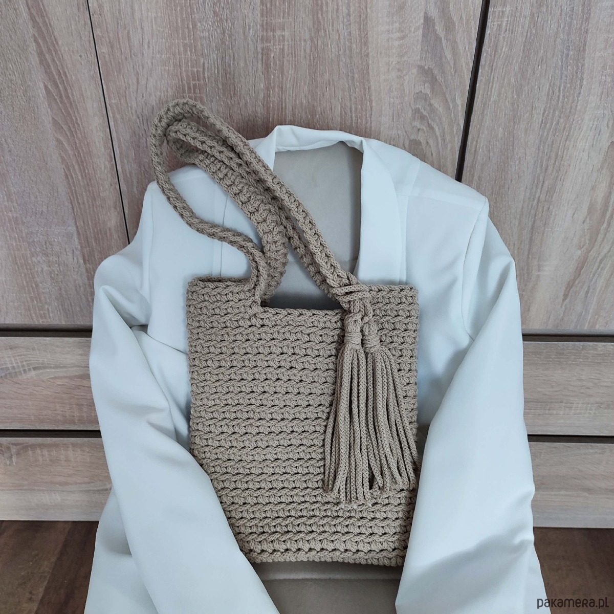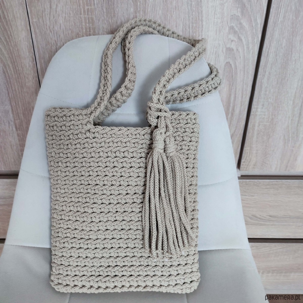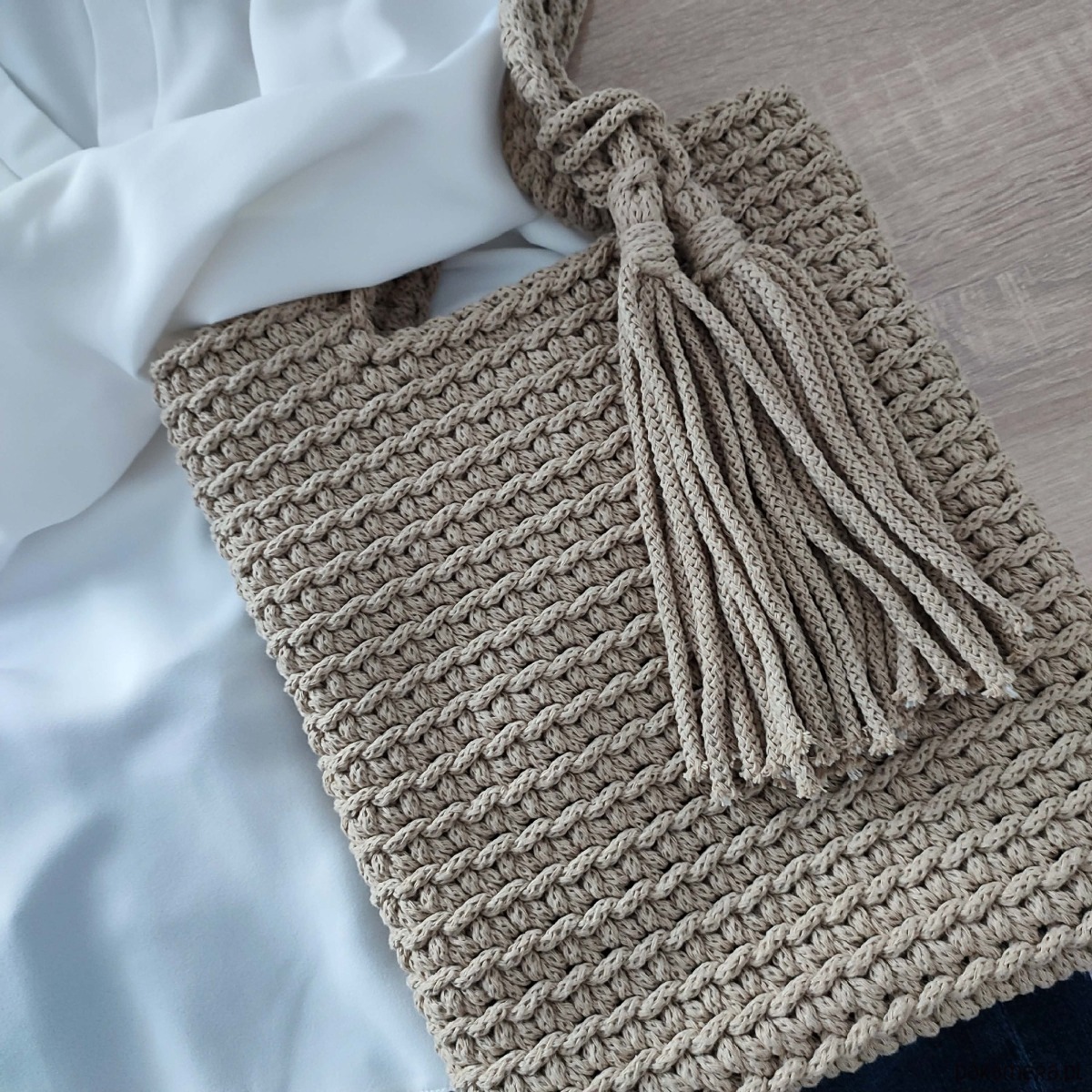 Torba szydełkowa na ramię ze sznurka 25cmx30cm