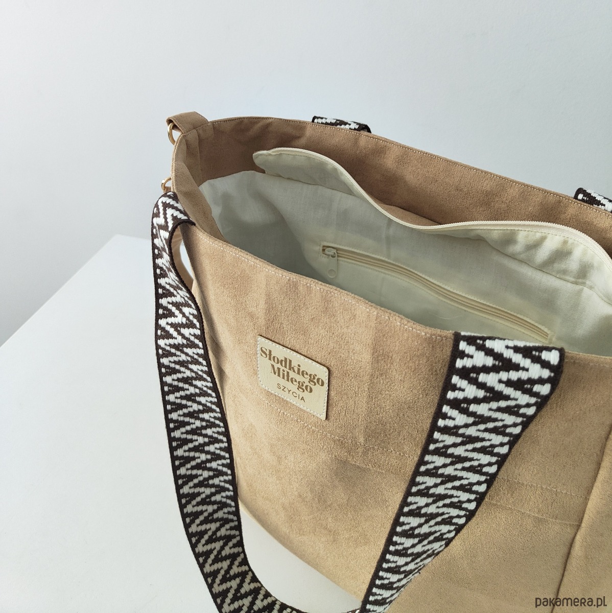 Torba T H E A Beige - mały shopper, beżowa zamszowa