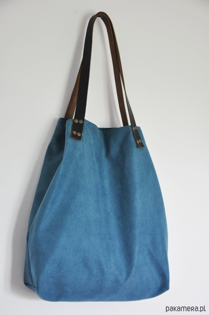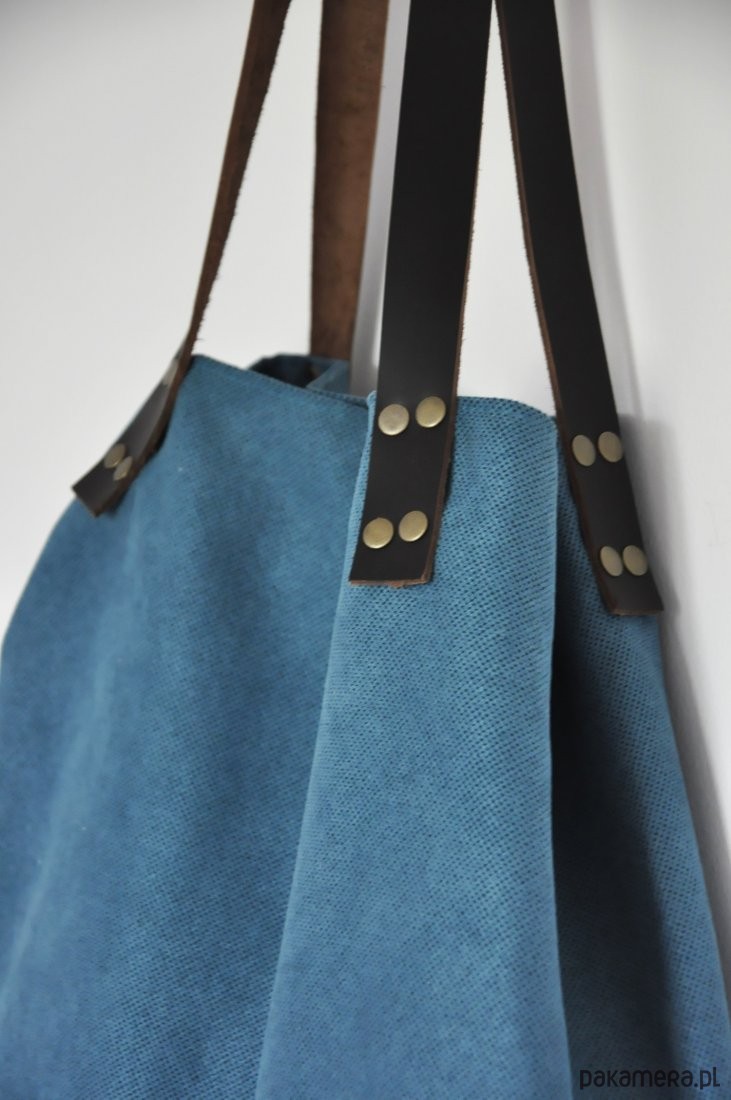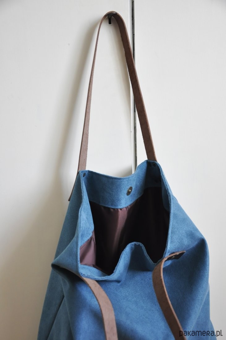 Duża torba w kształcie worka wykonana z pluszowej, miłej w dotyku tkaniny w kolorze turkusowym,