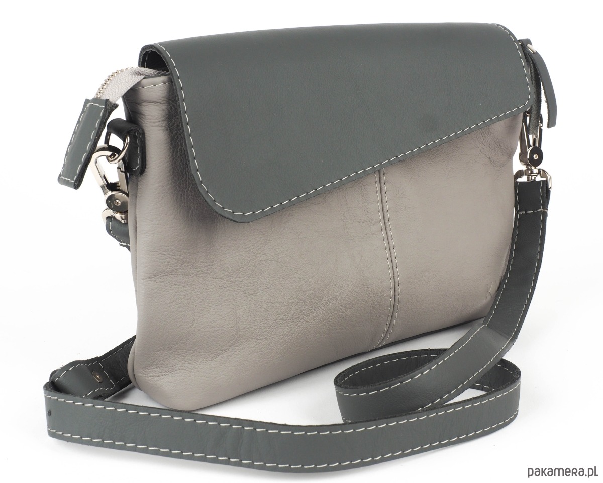 Czarująca, szara mała listonoszka wykonana z naturalnej skóry. Jednokomorowa, zamykana na suwak i asymetryczną klapę. Model z wygodnym, dopinanym, skórzanym paskiem o regulowanej długości. Można nosić ją na ramieniu, na skos lub jako małą kopertówkę. Podszewka w kolorze bordowym. Wewnątrz dwie kieszonki, jedna otwarta, jedna zapinana na suwak . Okucia w kolorze srebrnym. Klasyczna, mała listonoszka z asymetryczną klapką, ten fason na pewno nie jest nudny! Niebanalne zestawienie kolorów przyciąga wzrok. Idealnie sprawdzi się na wieczorne wyjścia oraz w codziennym użytkowaniu.