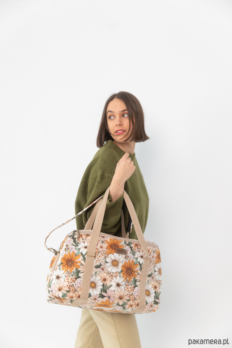 Torba welurowa podróżna ochra to świetny wybór na podróż, fitness, czy basen. Wielkość torby odpowiada wymiarom bagażu do samolotu, co sprawia, że torba sprawdzi się w wielu sytuacjach. Wykonana z weluru o charakterystycznym włosku, który jest przyjemny w dotyku nadaje torbie niebanalnego wyglądu. Tkanina ta cechuje się dużą odpornością na uszkodzenia i łatwością w czyszczeniu. Jedną z największych zalet torby jest jej lekkość. Zamek biegnący po niemal całym obwodzie góry ułatwia pakowanie i wypakowywanie rzeczy ze środka. Na tyle znajduje się kieszonka na zamek, która jest również uchwytem na rączkę od walizki.