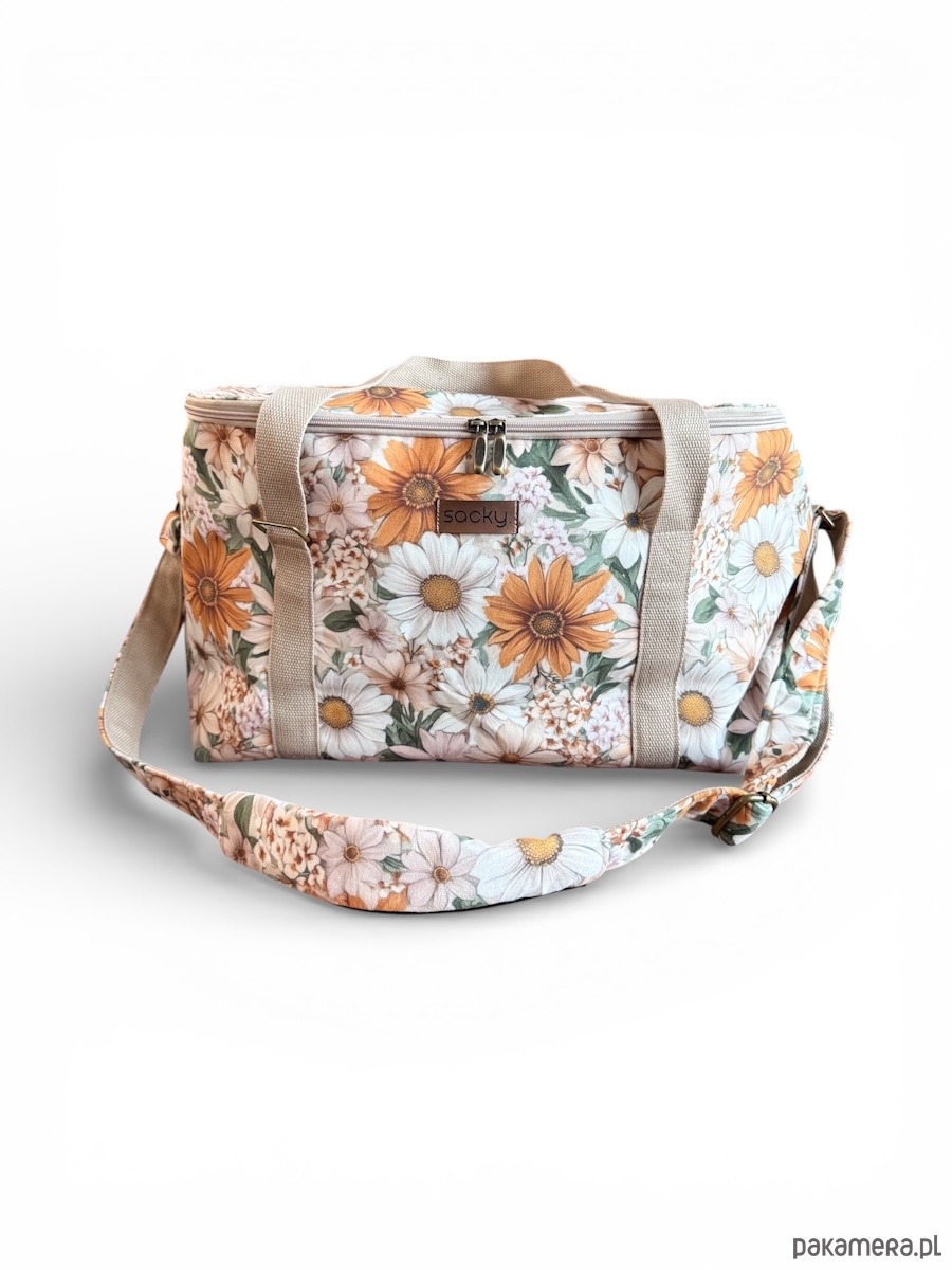Środek jest podszyty wodoodporną, gładką podszewką. Wewnątrz zajdziesz trzy kieszenie otwarte oraz dużą kieszeń na zamek, która doskonale sprawdzi się na elektronikę. Krótkie rączki są wykonane z mocnej taśmy bawełniano poliestrowej. Torba po boku ma długi, regulowany pasek.