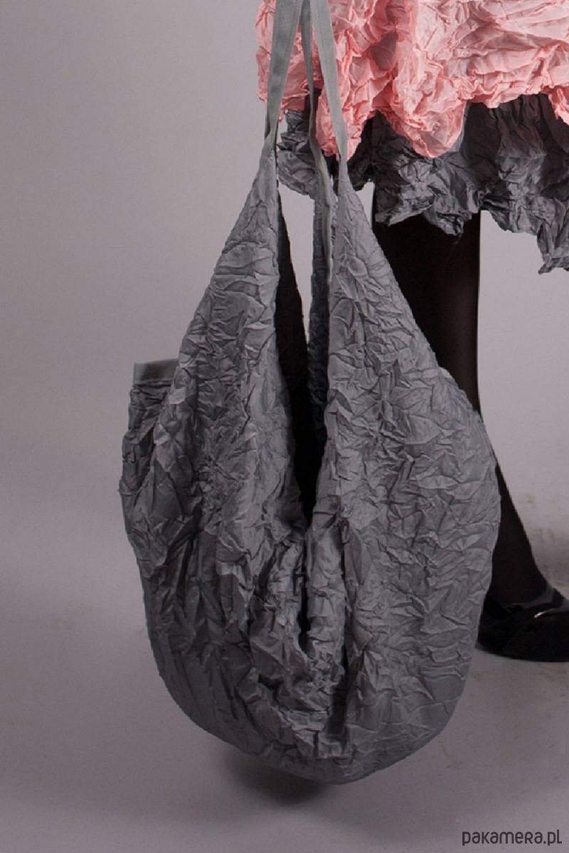 Szara torba -worek na ramię z plisowanego poliestru zapinana na suwak