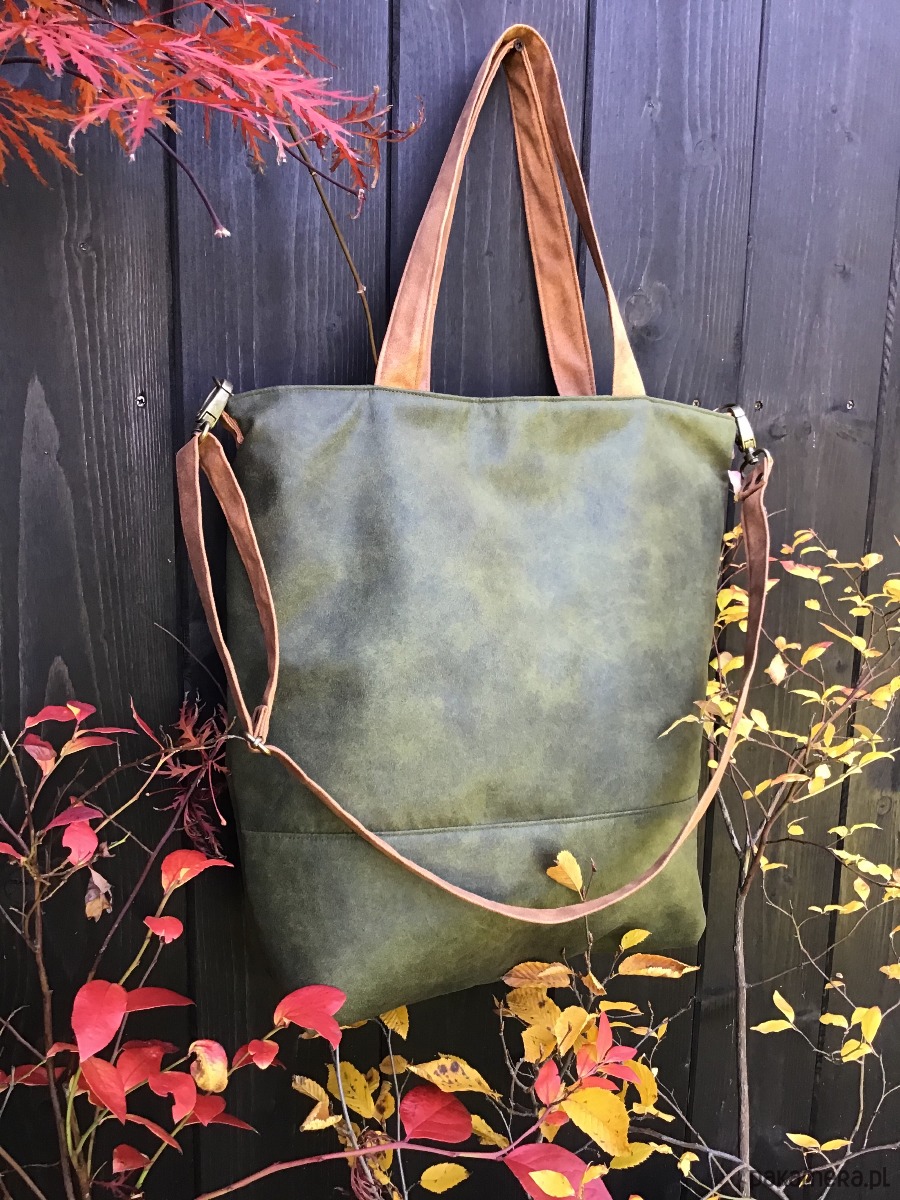 Pojemna, wegańska torba wykonana grubego i mięsistego, syntetycznego nubuku.