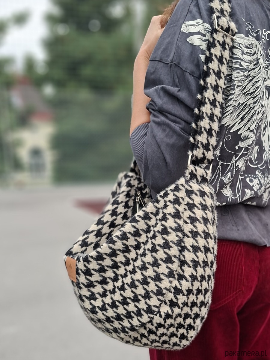 Torba worek z puchatej tkaniny w pepitkę Beżowa