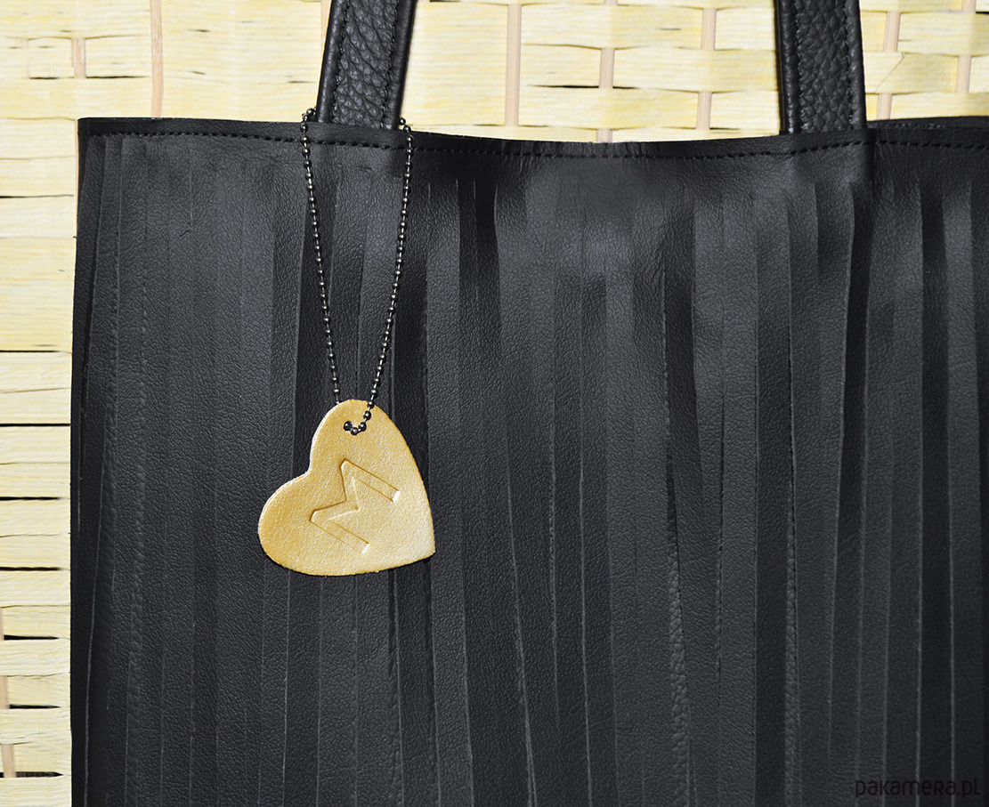 Akcent stanowi skórzane serduszko na czarnym łańcuszku.