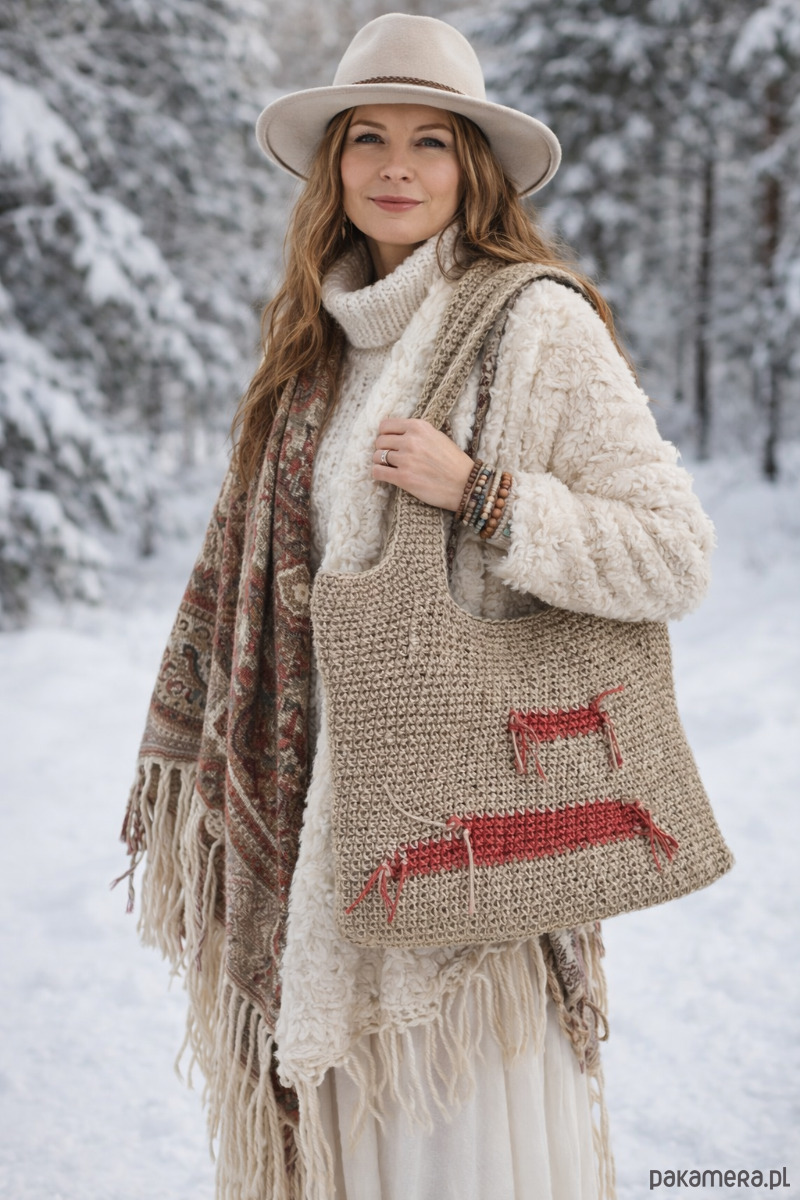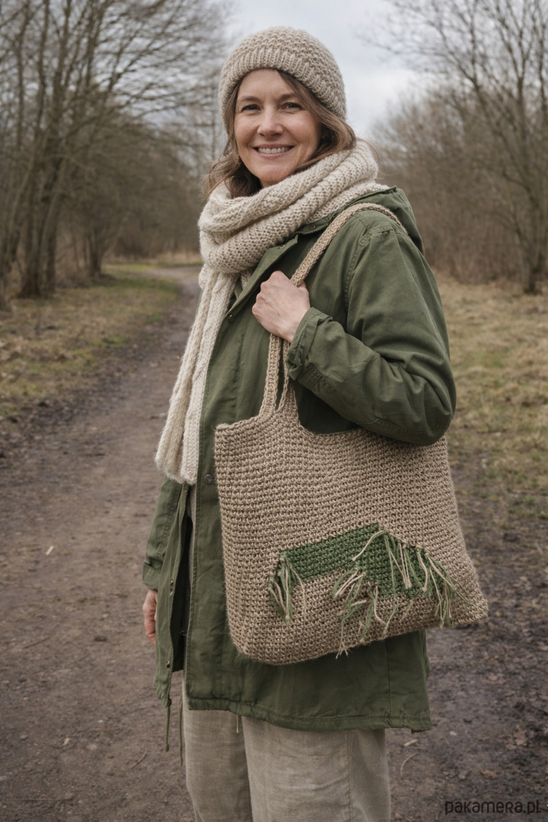 Torba jest solidna, pojemna i wygodna w noszeniu na ramieniu. Sprawdzi się na co dzień – na zakupy, spacer, targ, do pracy czy na wyjazd. Naturalna faktura konopi nadaje jej surowy, boho charakter i sprawia, że pięknie komponuje się z lnianymi i wełnianymi stylizacjami.