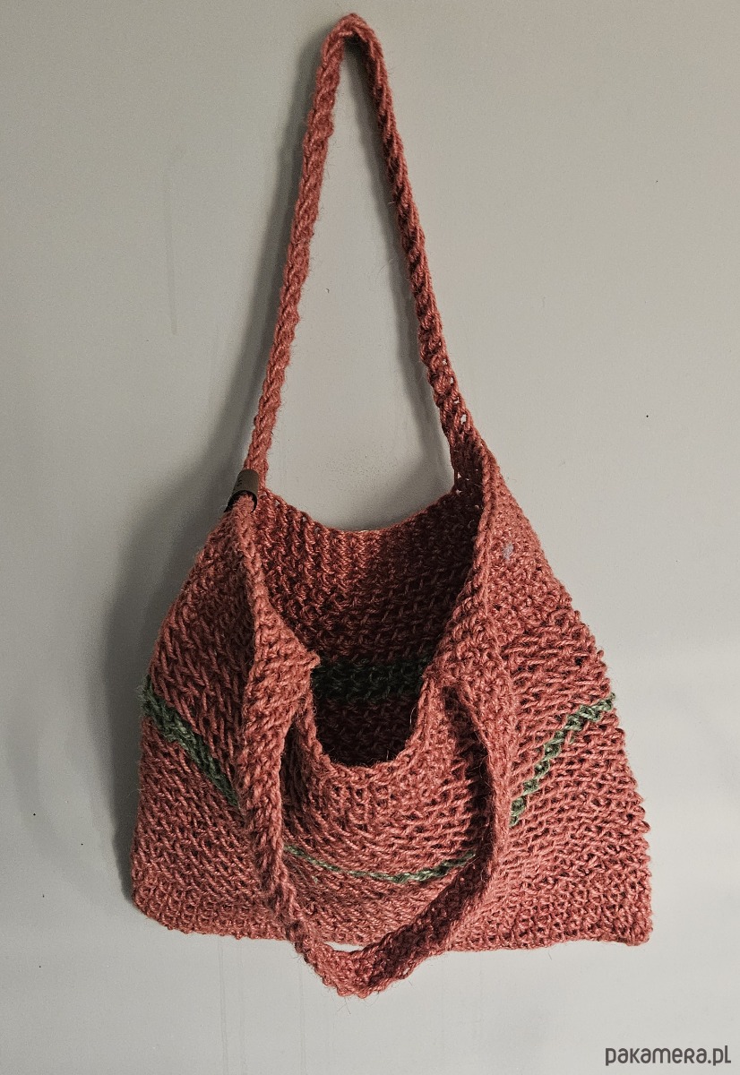 Ręcznie wykonana torba ze sznurka konopnego, stworzona z dbałością o każdy detal. Naturalna faktura i lekko surowy charakter sprawiają, że jest nie tylko praktyczna, ale i wyjątkowa.