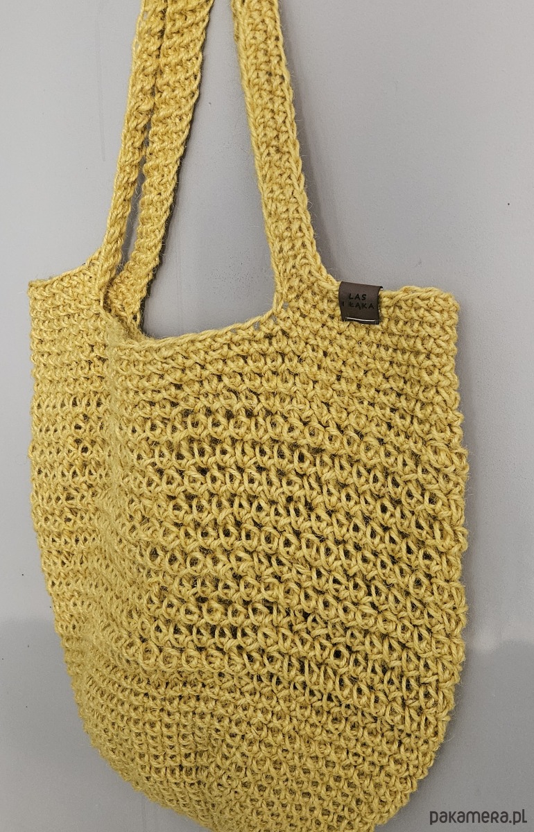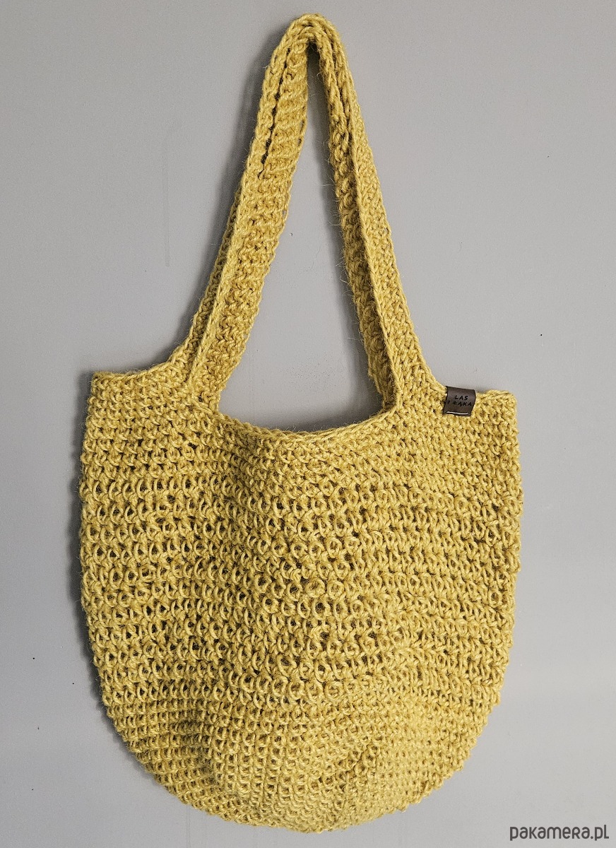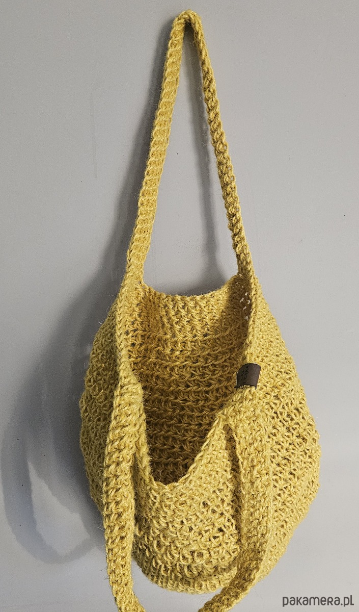 Ręcznie wykonana na szydełku torba ze sznurka konopnego w pięknym, ciepłym odcieniu musztardy. Naturalna faktura splotu nadaje jej wyjątkowy charakter i sprawia, że jest nie tylko praktyczna, ale również bardzo stylowa.