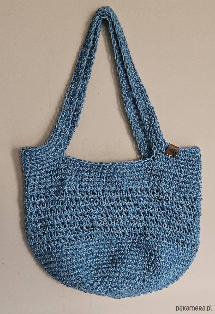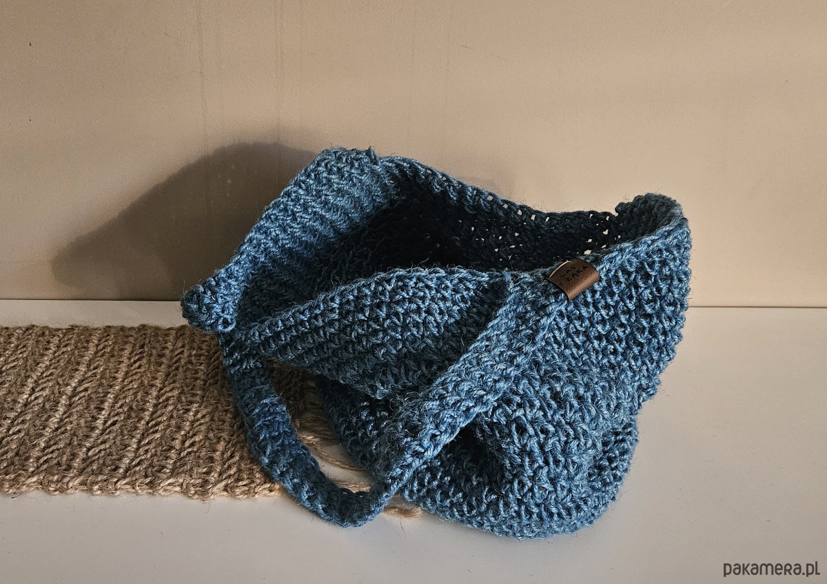 Ręcznie wykonana na szydełku torba ze sznurka konopnego w pięknym, ciepłym odcieniu niebieskiego. Naturalna faktura splotu nadaje jej wyjątkowy charakter i sprawia, że jest nie tylko praktyczna, ale również bardzo stylowa.