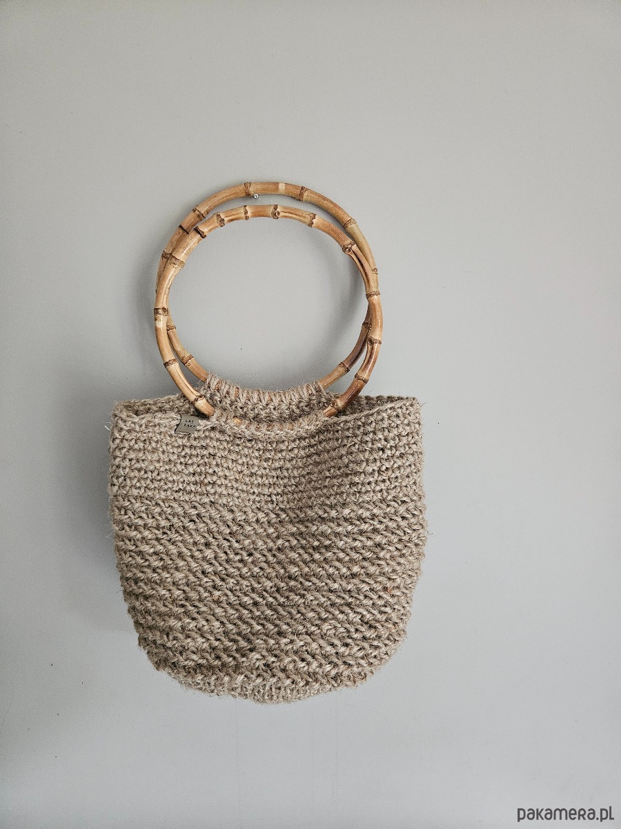 Naturalna, ręcznie wykonana torba na ramię ze sznurka konopnego z bambusowymi rączkami. Idealna na zakupy, spacer lub codzienne wyjścia.Wytrzymała, stworzona z ekologicznych materiałów.