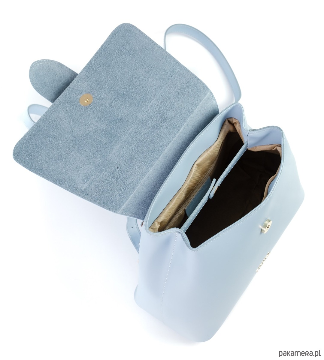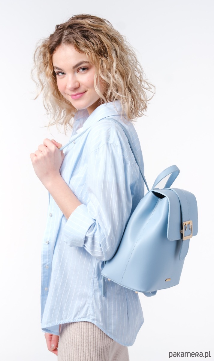 Plecak ze skóry naturalnej, gładkiej, z ozdobną klamrą, idealna dla aktywnych kobiet.