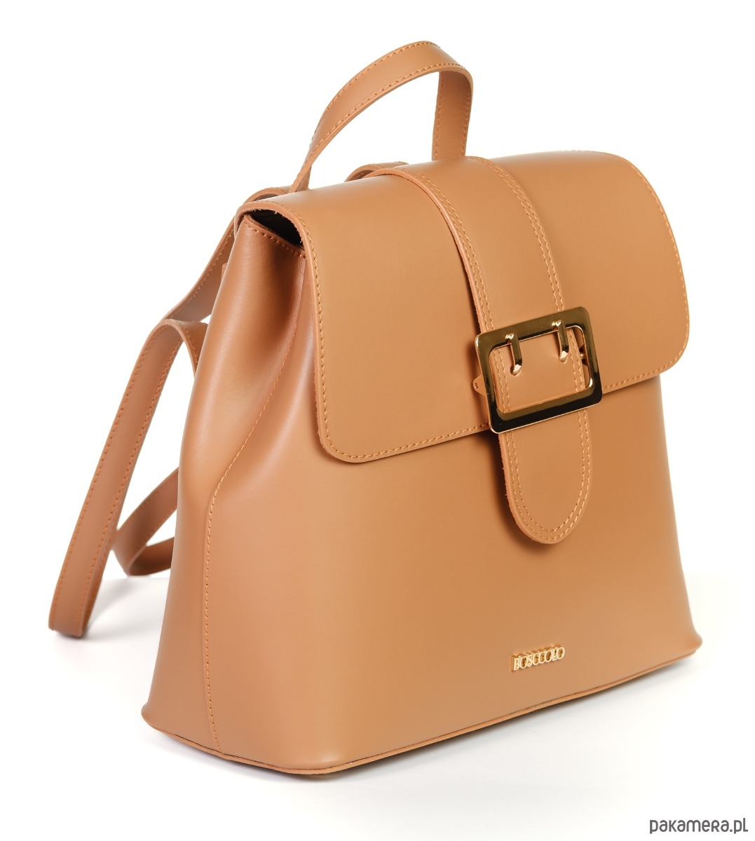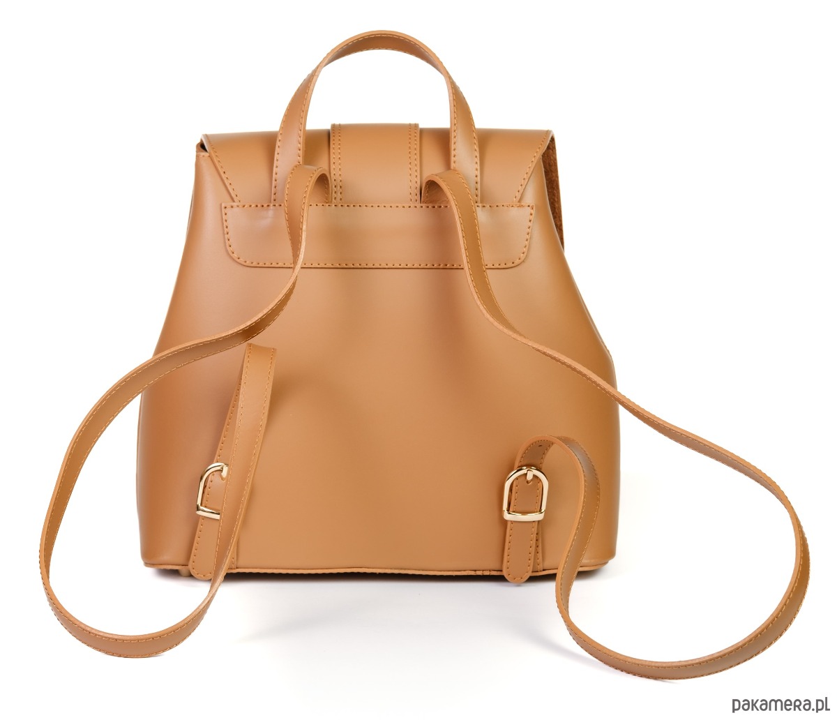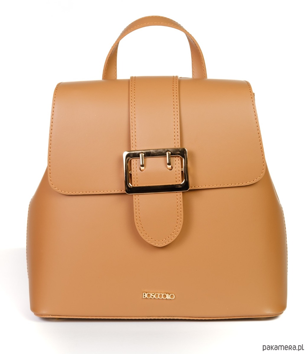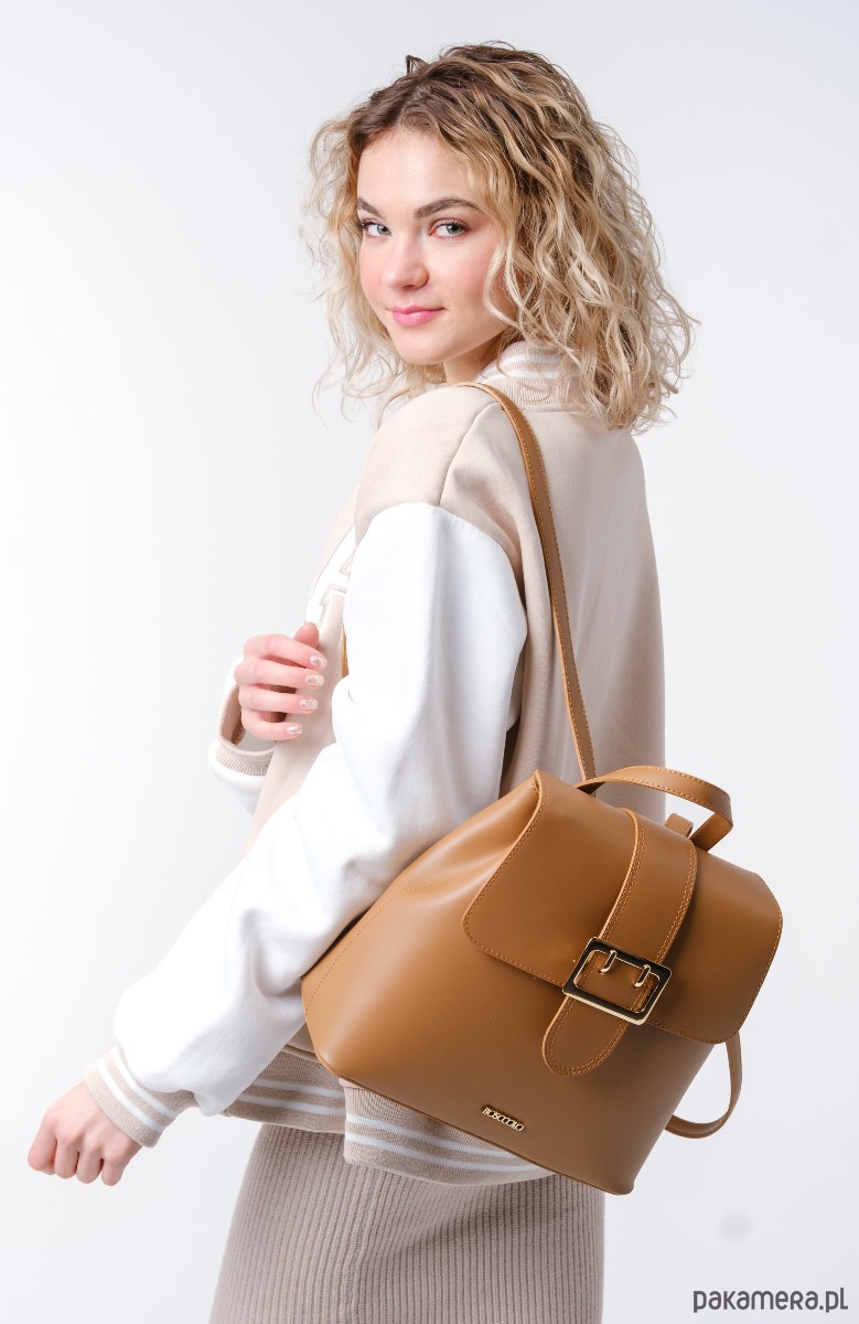 Plecak ze skóry naturalnej, gładkiej, z ozdobną klamrą, idealna dla aktywnych kobiet.