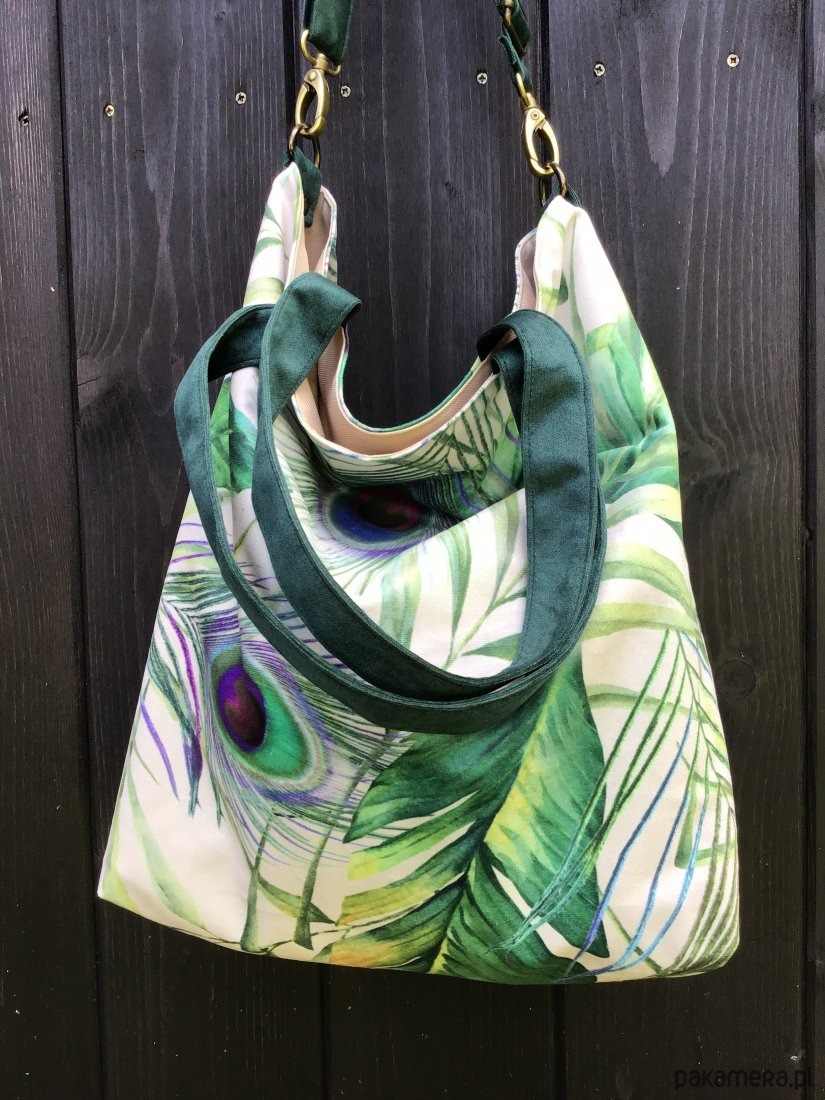 Torbay hobo XXL - print, pawie oczka