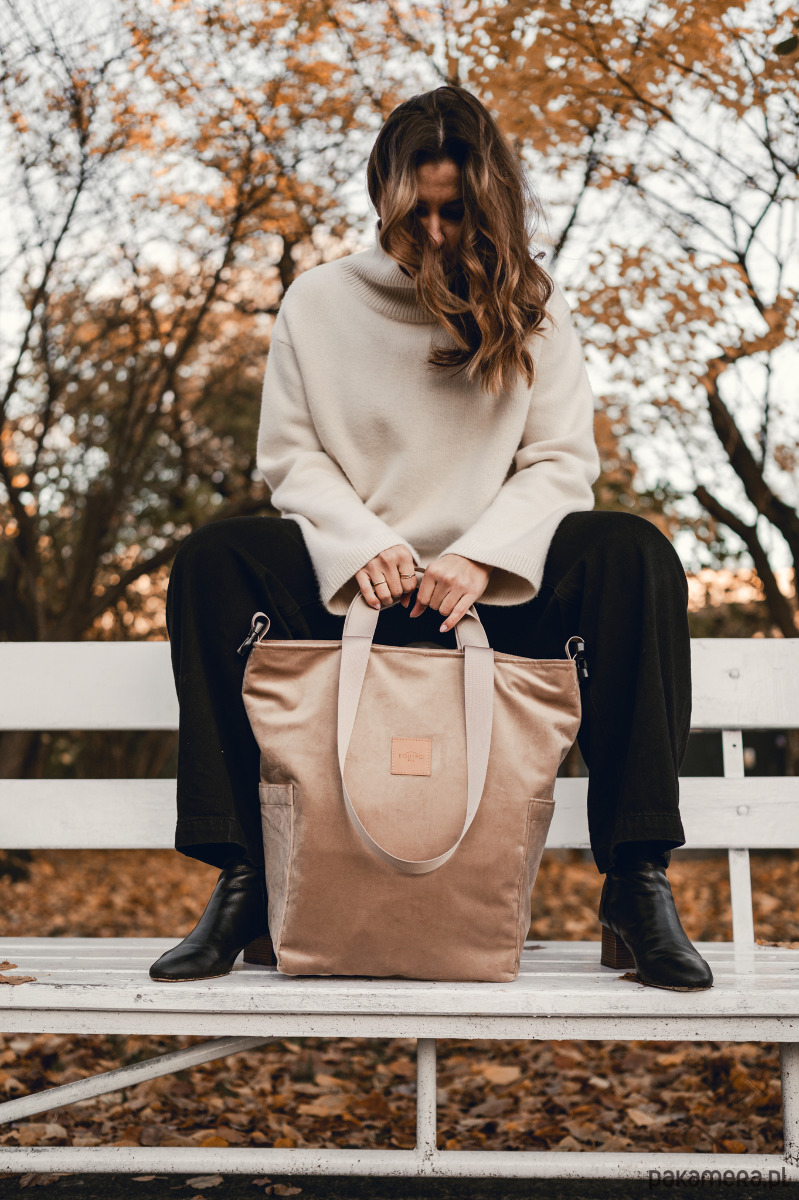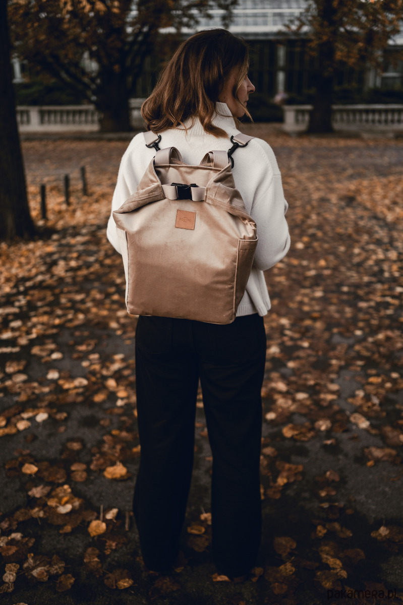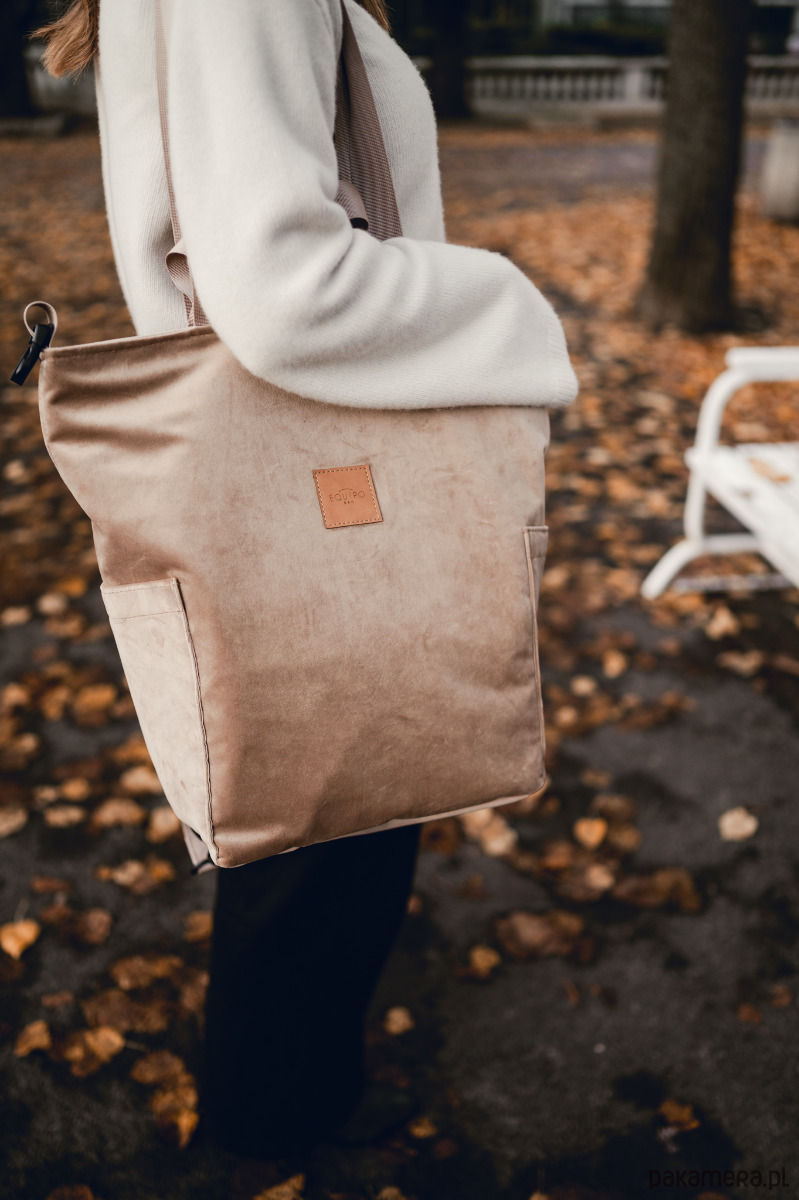 Torbo-plecak Beżowy welur wodoodporny boho plecak do laptopa