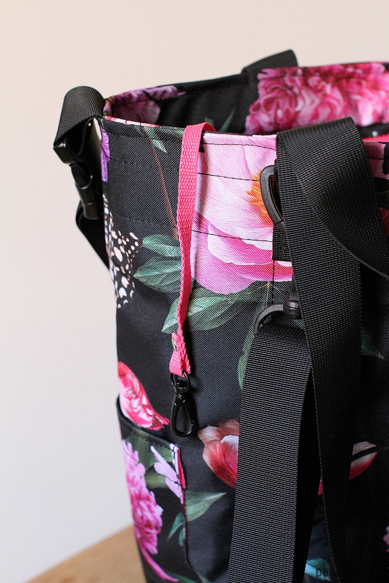 Rączki w dwóch długościach 30 i 75cm, paski plecaka z regulacją do 100cm oraz długi pasek dopinany na klamry 150cm.