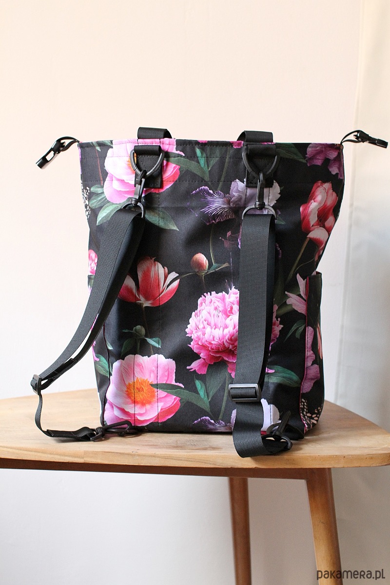 Torbo-plecak Nocne Piwonie w ogrodzie czarna codura w kwiaty wodoodporny