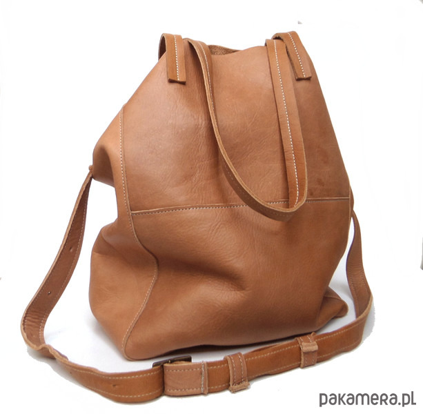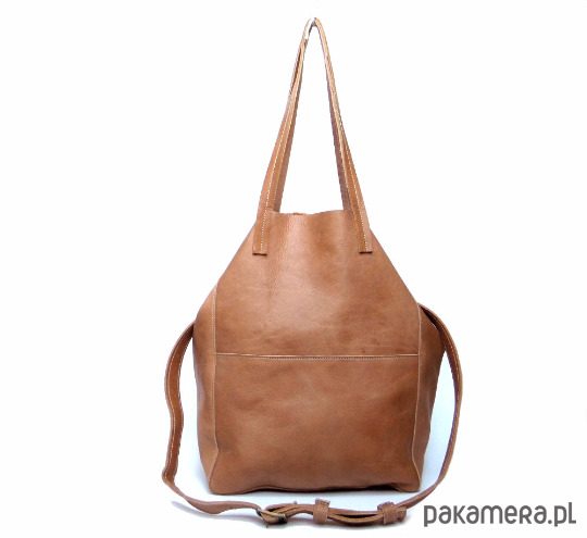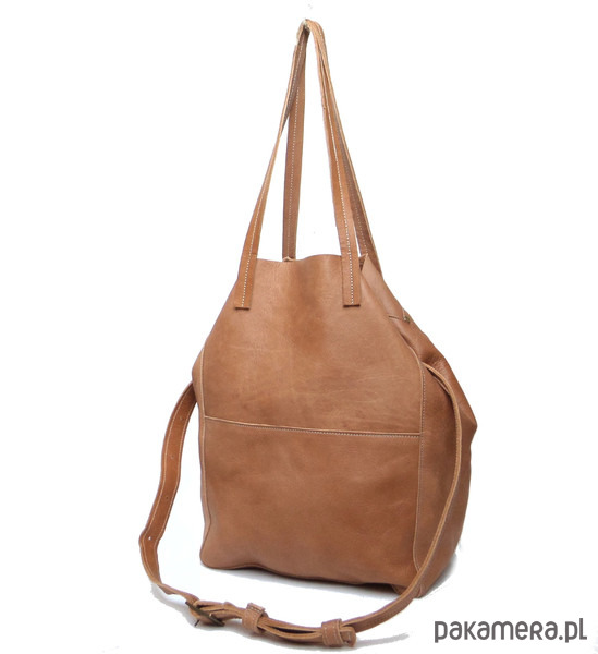 Duża wakacyjna torba. Uszyta z miękkiej skóry naturalnej w kolorze camelowym. Boki ładnie składają się do środka.