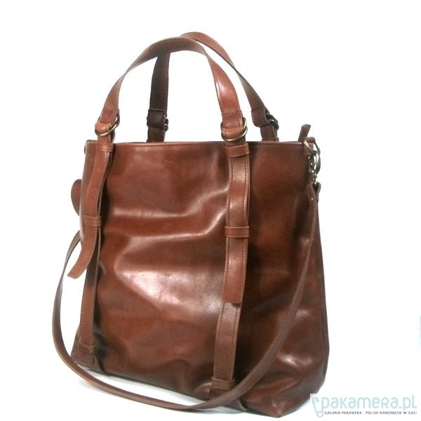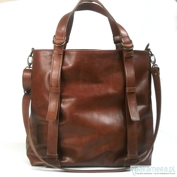 Duża skórzana torba - uszyta z miękkiej brązowej skóry naturalnej. Przód łączony ze skórą musztardową fakturowaną. Uchwyty oraz wykończenia boków ze skóry musztardowej fakturowanej. Torbę można nosić zapiętą na zamek lub/i na magnes, jak wygodnie:). Wyłożona podszewką. Uchwyty podwójne - 50 cm - do noszenia na ramieniu. Pasek długi szer. na 2,5 cm cm, długi z dużą możliwością regulacji - można nosić na kos i na krótszym pasku. Wewnątrz kieszeń na zamek i 2 na komórki. Okucia ciemno złote. Wys. 32 cm, szer. do 40 cm, gł. 14 cm Wysyłka 24 h.