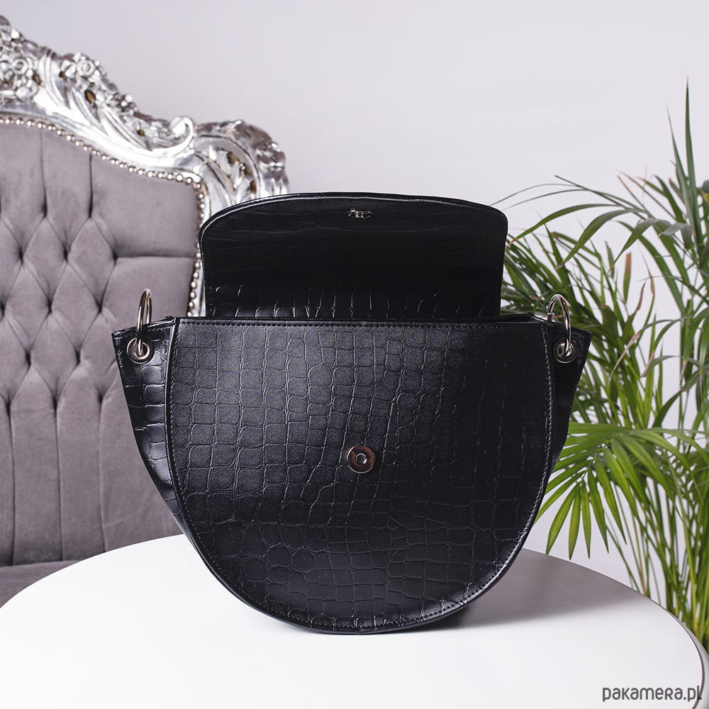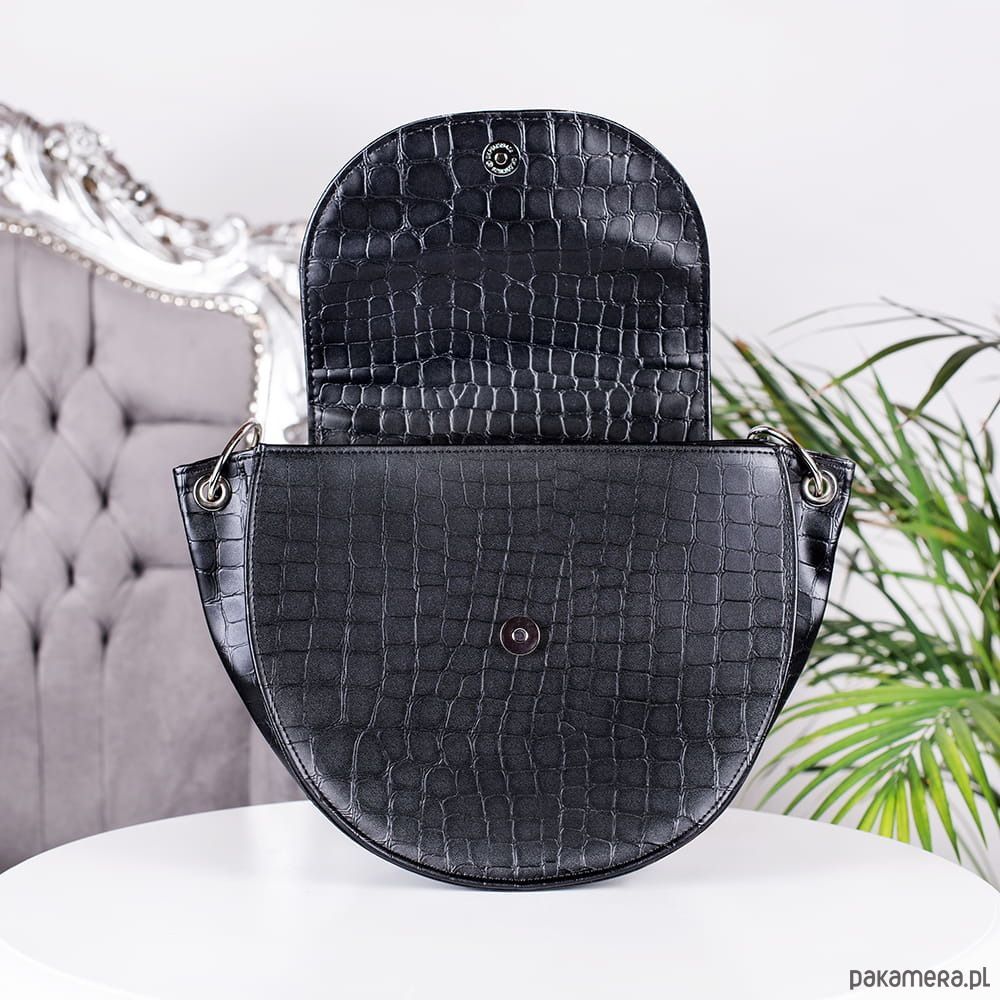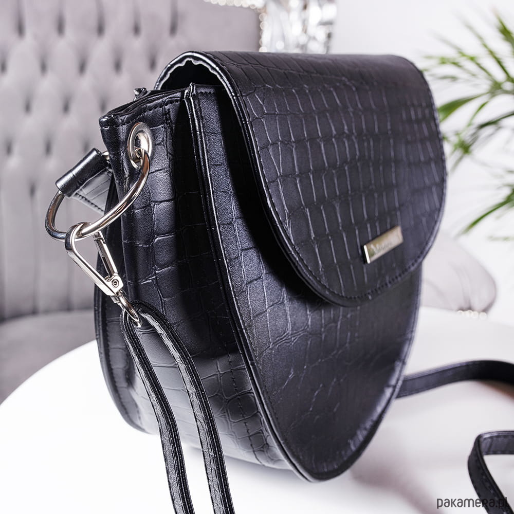 Duża klasyczna i elegancka listonoszka w ponadczasowym fasonie. Torebka została uszyta z eko skóry imitacja skóry krokodyla. Jest matowa. Usztywniana, jednokomorowa, zapinana na magnetyczny nap i zamek.
