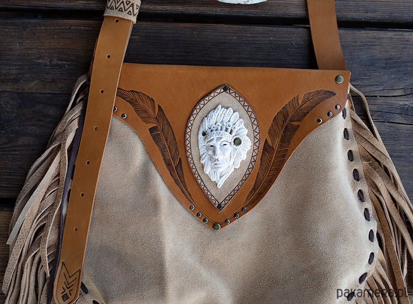 motywy wypalane , płaskorzeźba Indianina wykonana z glinki polimerowej