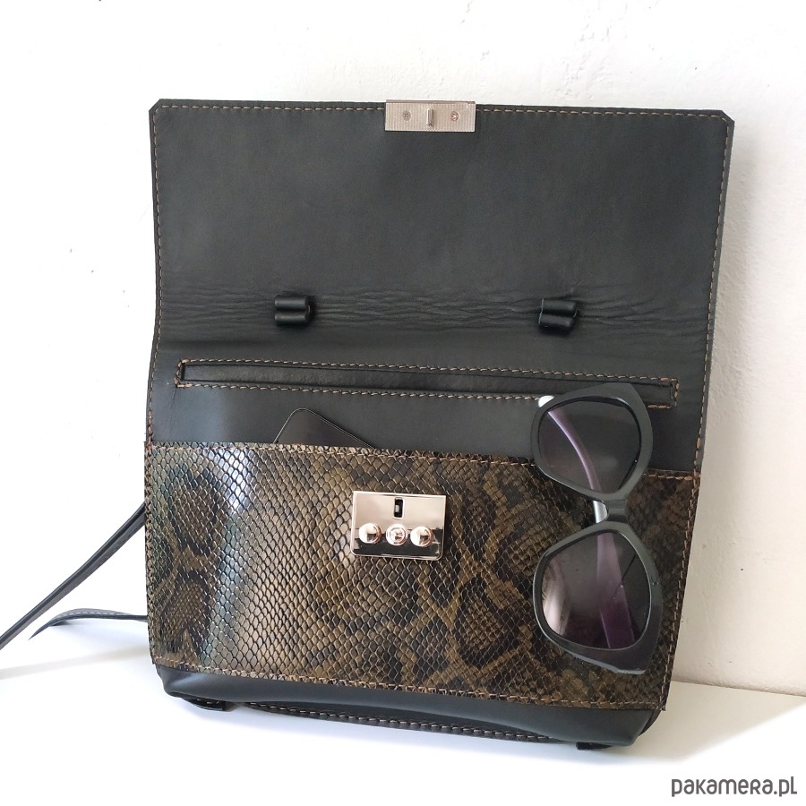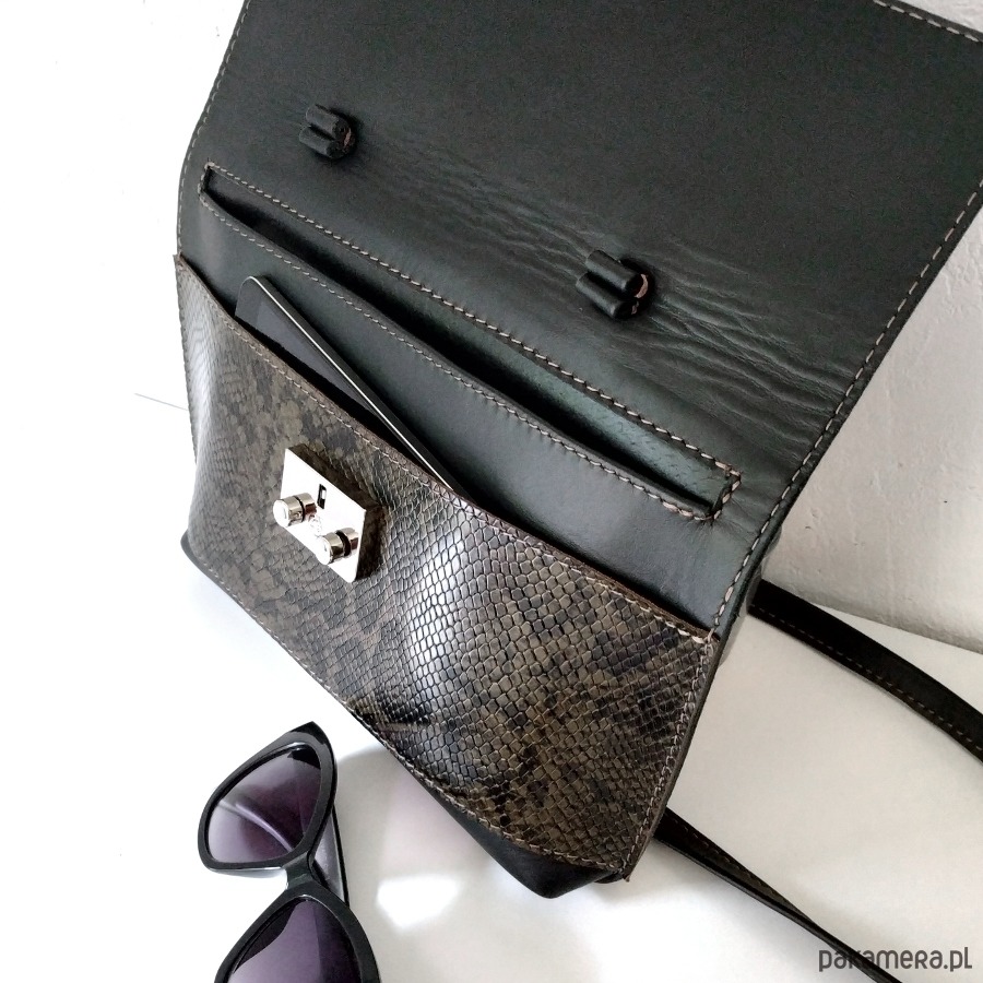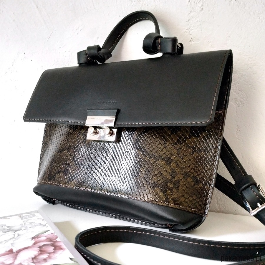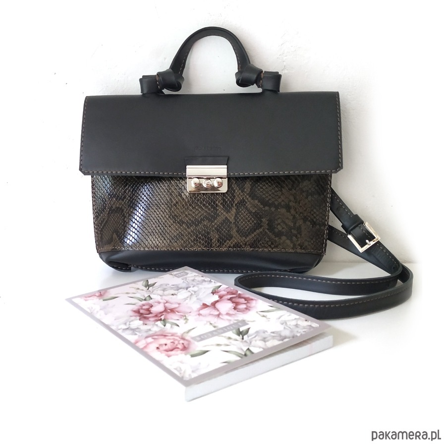 Wyjątkowa torebka na ramię wykonana z naturalnej licowej skóry gładkiej i tłoczonej wężowej.