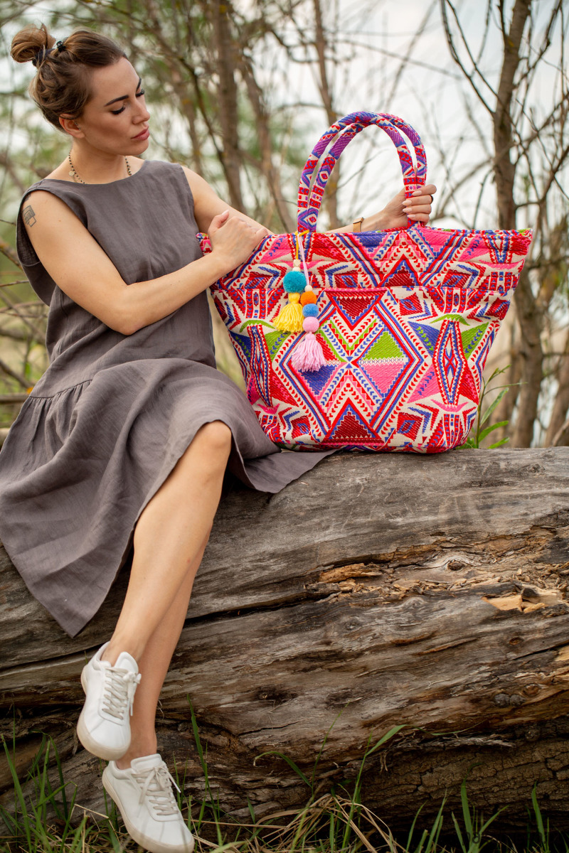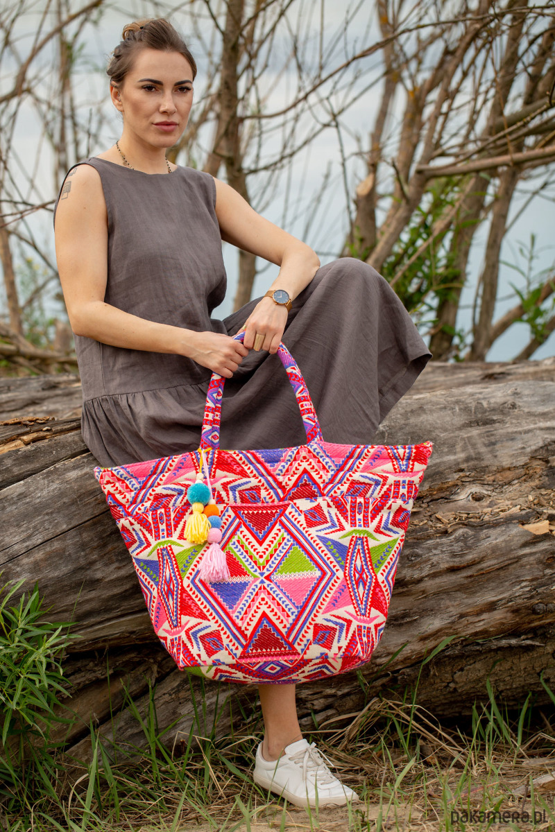 Pojemna, solidna torba XXL wykonana z mięsistej ręcznie tkanej bawełny sprowadzanej z Indii;