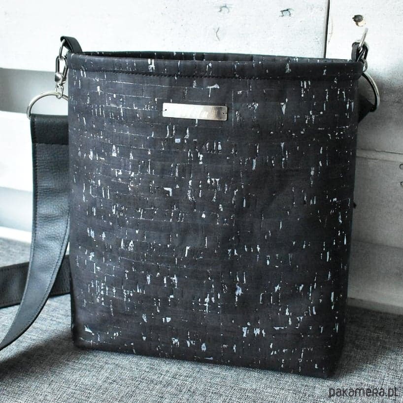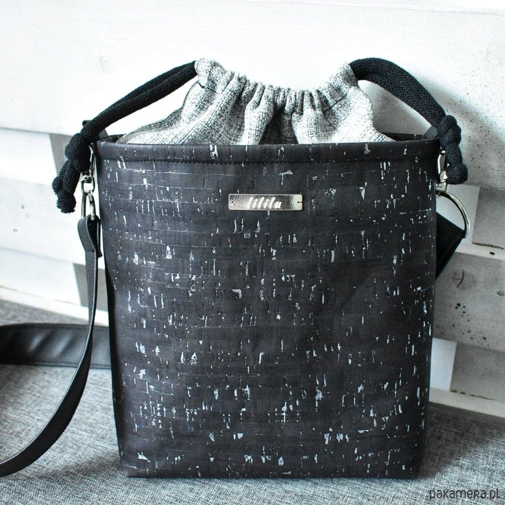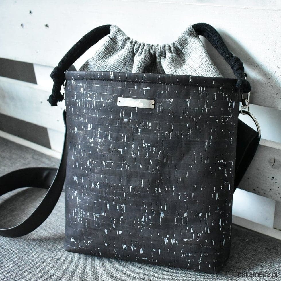 Miejska torebka średniej wielkości z tkaniny korkowej.