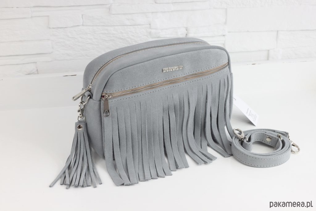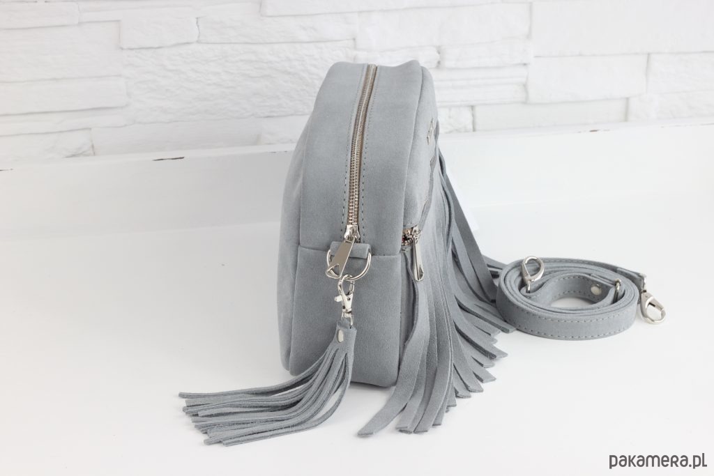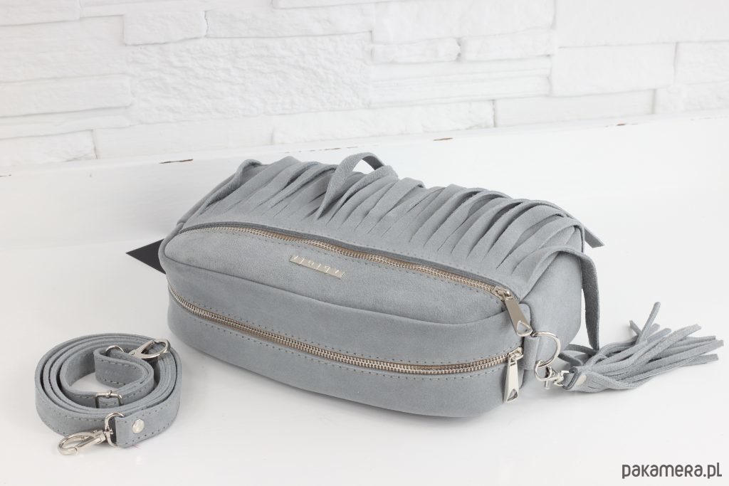 Torebka zamszowa MASIKA zamek na froncie szary myszka