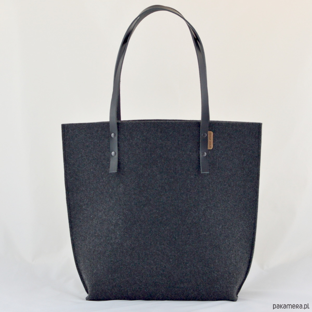 Torebka została wykonana z wytrzymałego, mocnego, polskiego filcu w kolorze grafitowym. Prosta, minimalistyczna forma. Rączki torebki zrobione zostały z grubej, bydlęcej czarnej skóry. Torebka wygląda naprawdę ładnie!