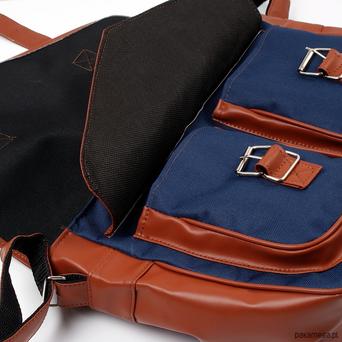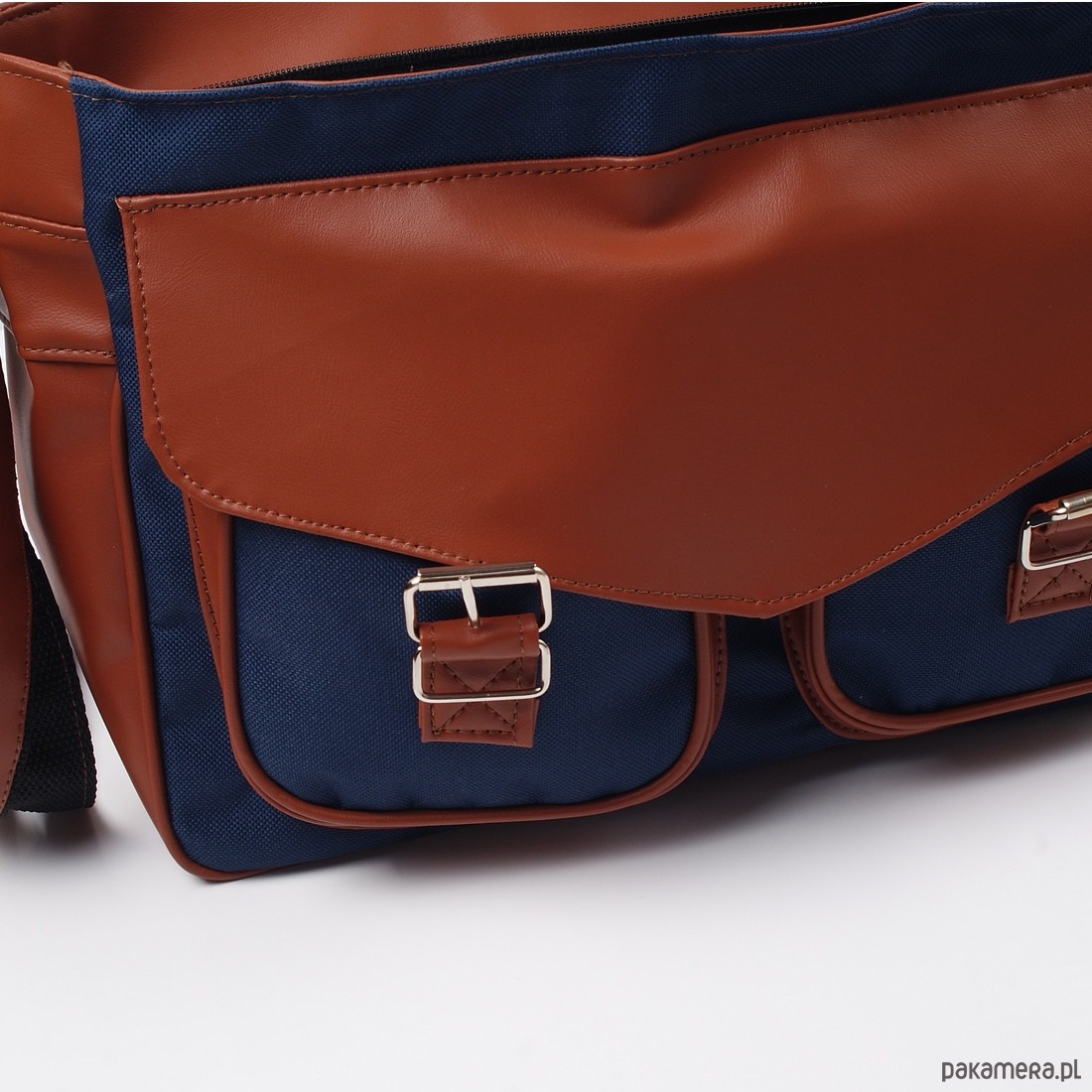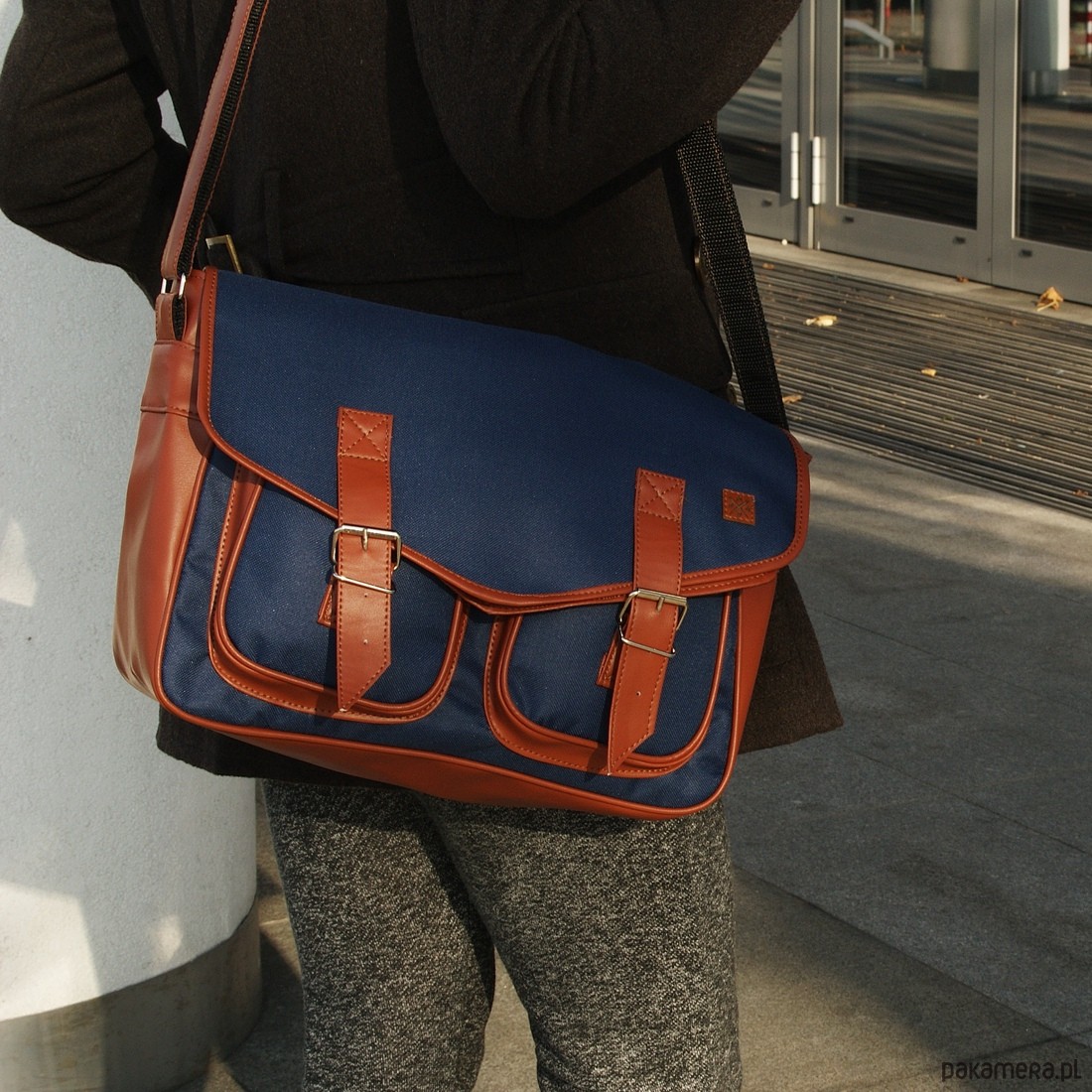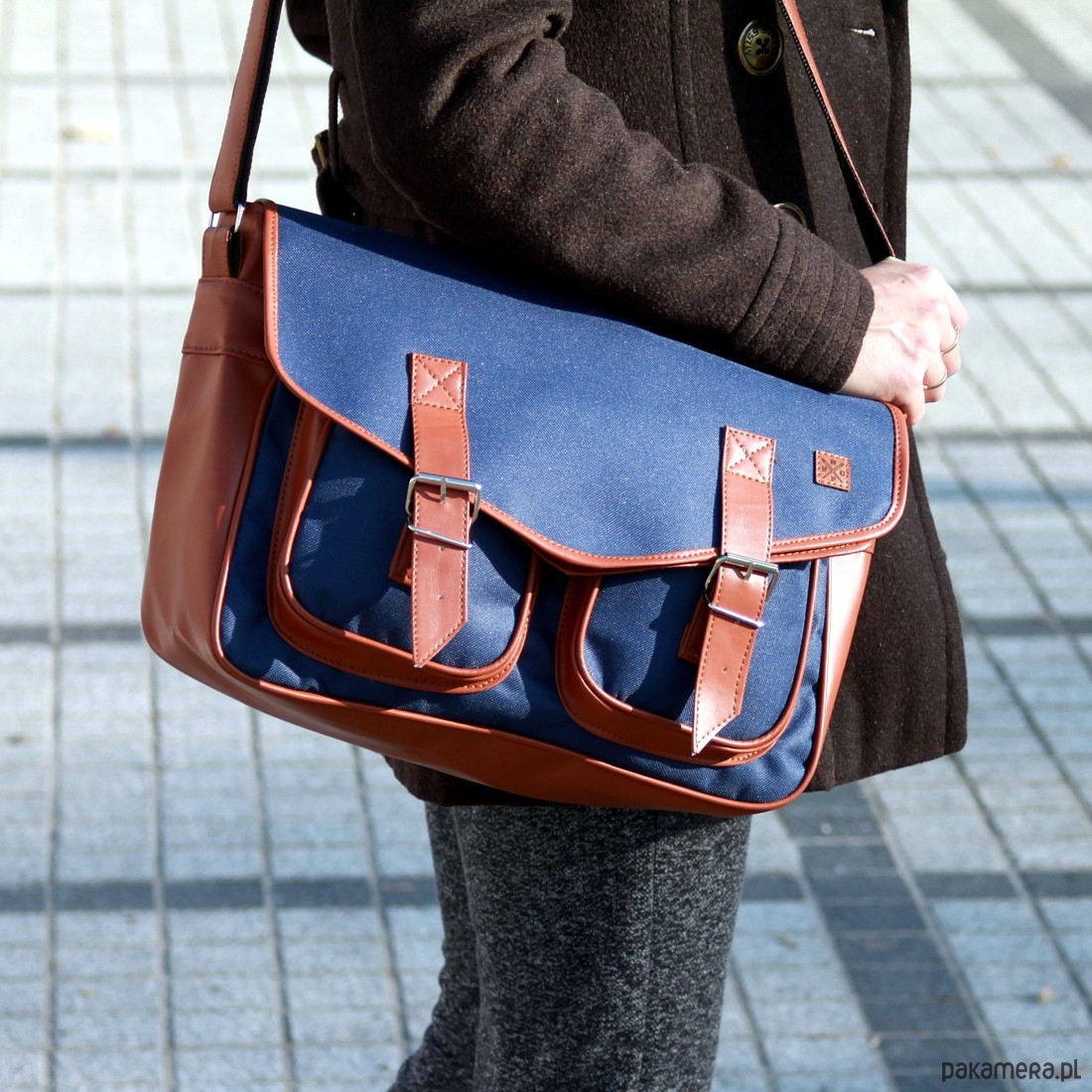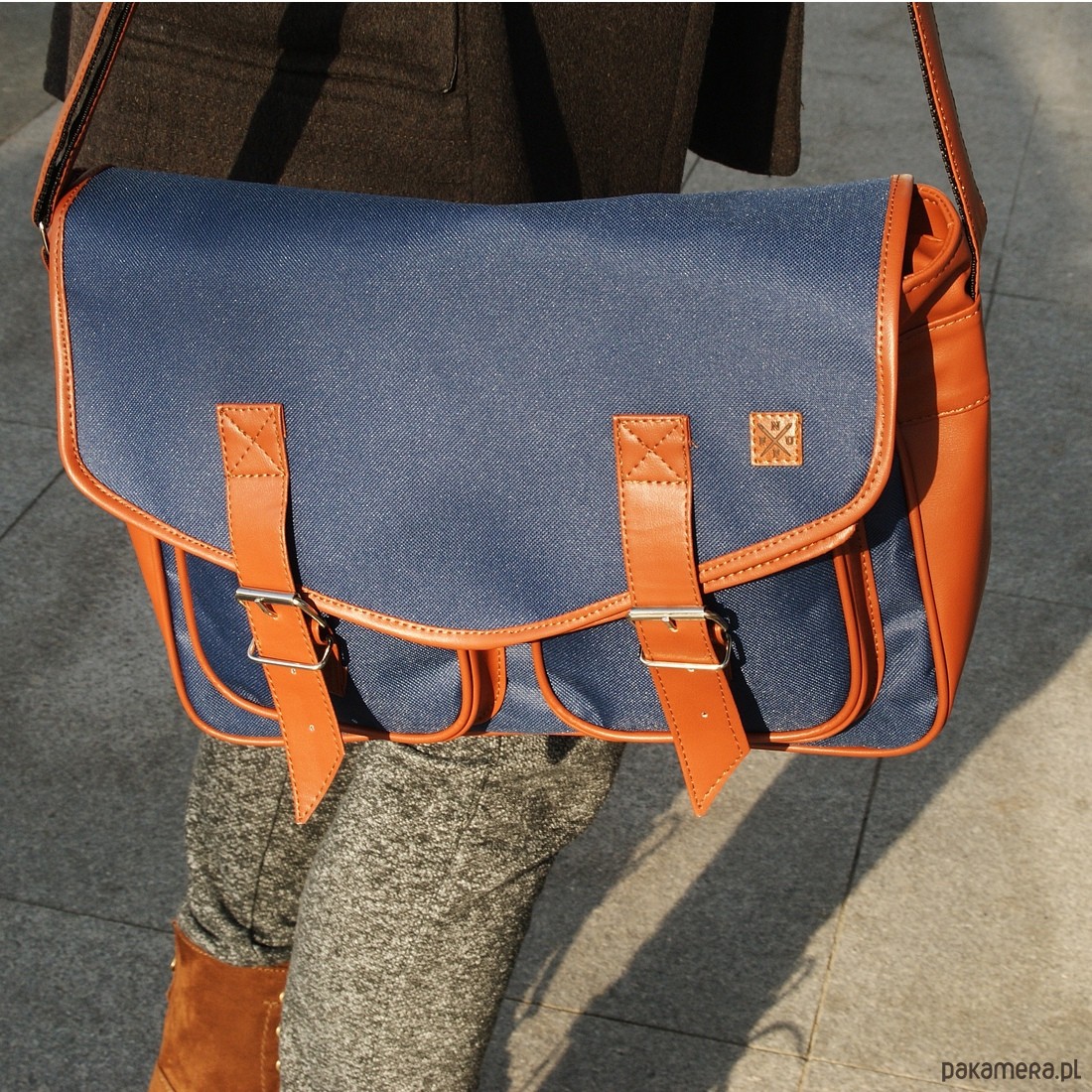 Praktyczna, pojemna torba studencka "listonoszka" Nuff wear. Wykonana z tkaniny poliestrowej i ekoskóry. Wyłożona podszewką. Komora główna zapinana na zamek błyskawiczny i klapę. Dwie kieszenie zewnętrzne pod klapą. W głównej komorze dodatkowo kieszonka zapinana na zamek. Regulowany pasek o długości w przedziale 66 cm - 128 cm. Wymiary torby: wys.25 cm x szer.34 cm x gł.13 cm. Szeroki pasek, regulowany: od 62 cm do 124 cm. Kolor: granatowy z brązowymi wstawkami z ekoskóry. Produkt Polski.