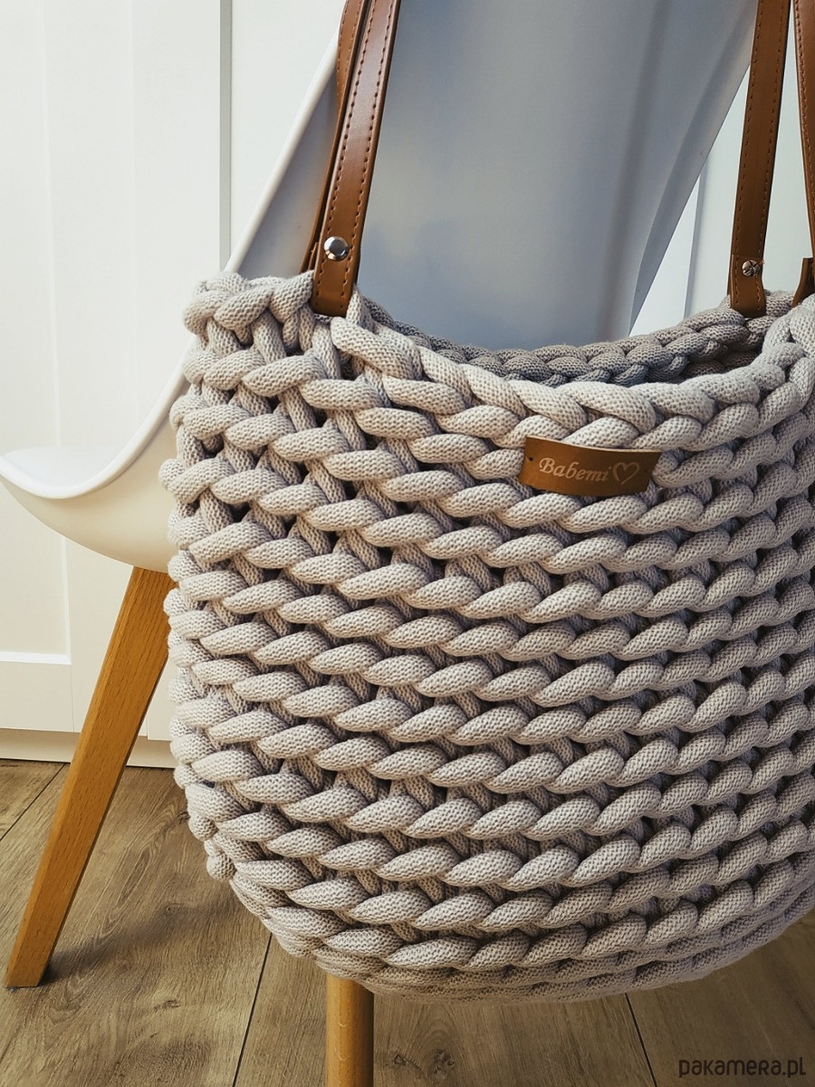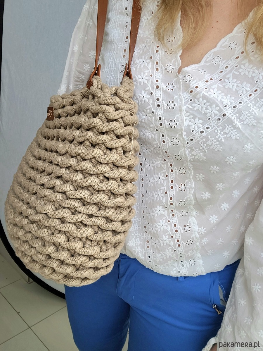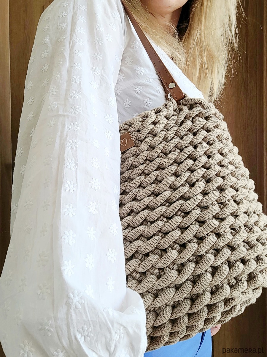 Duża torba wykonana na szydełku przepięknym luźnym splotem.
