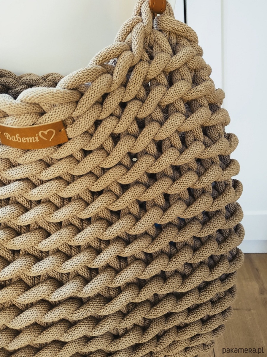 Duża torba wykonana na szydełku przepięknym luźnym splotem.