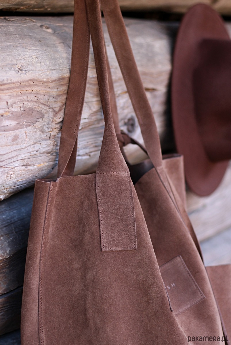 Prosta, skórzana, surowo wykończona torba. Idealna dla minimalistek. Niepozorna, a pomieści cały świat.