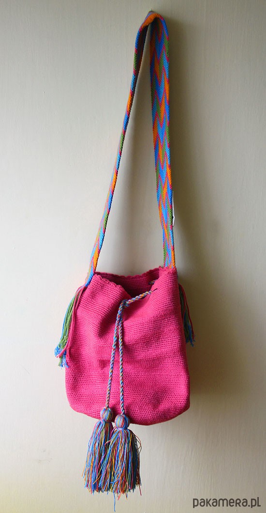 Jeśli marzysz o posiadaniu wyjątkowego i niepowtarzalnego przedmiotu, który związany jest z niesamowitą historią i kulturą, to ta indiańska torba jest właśnie dla Ciebie. Przed Tobą pierwsza w Polsce autentyczna kolekcja indiańskich mochilas. Mochila, określana w indiańskim narzeczu jako “susu" (czyli „to, co idzie razem z Tobą”), jest podstawowym elementem ubrania Ta indiańska torba jest rodzajem worka wykonanego z jednokolorowych bawełnianych, grubych i mocnych nici na szydełku.Tworząc tkaninę odporną na ścieranie. Każda torba tkana jest tylko przez jedną kobietę, która odpowiada w pełni za jej projekt. Pasek torby dopasowany jest kolorystycznie do dolnej części torby i posiada on charakterystyczny wzór geometryczny, z kilku współgrających ze sobą kolorów, tworząc wspaniały, niepowtarzalny chromatyzm, typowy dla tej niezwykle kolorowej, indiańskiej kultury. Zgodnie z tradycją, worek ręcznie wyrabia kobieta, pasek zaś – mężczyzna. Wykonanie torby rozpoczyna się w formie spirali, tworząc okrągłą bazę, która stopniowo rośnie. Kolor: wrzos. Średnica podstawy torby: 25 cm. Wysokość worka: 28 cm. Długość paska: 107 cm. Szerokość paska: 6 cm. Każda mochila pakowana jest w ściągany, bawełniany woreczek eco o wymiarach 50 cm x 30 cm, który służy do jej przechowywania. Kolor torby i chromatyzm zdjęcia może się trochę różnić od przedstawionego na fotografii, ze względu na oświetlenie i ustawienia ekranu.