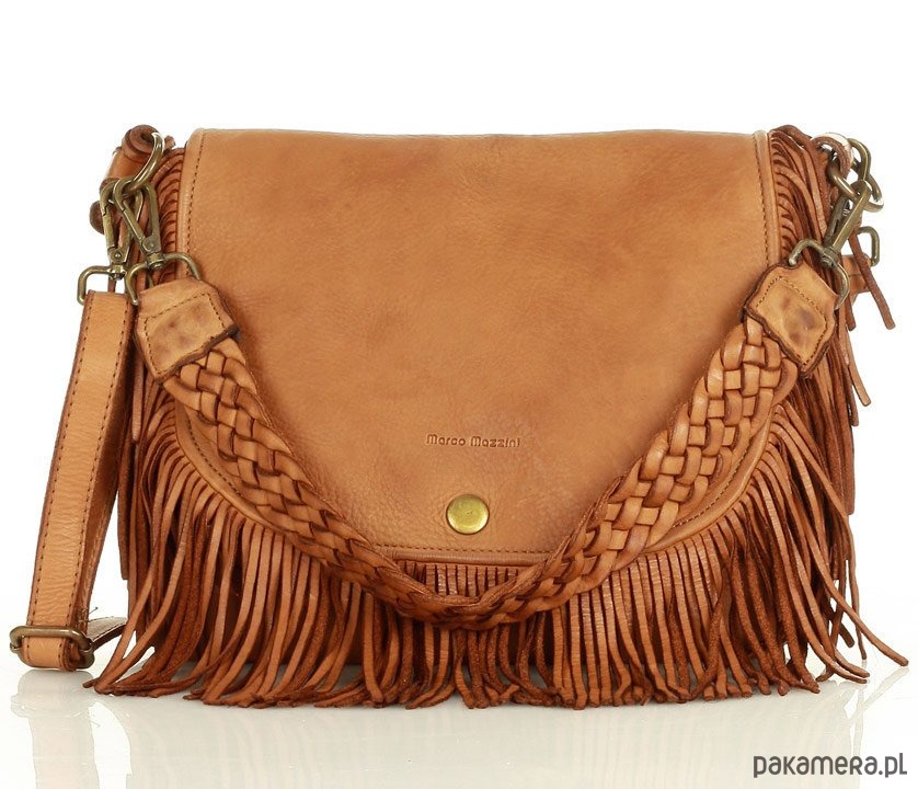 Torebka, skórzana listonoszka z długimi, folkowymi frędzlami idealnie sprawdzi się dla każdej osoby, która czuje się młoda duchem. Torebki z frędzlami pasują nie tylko do stylizacji boho, doskonale wypadają w połączeniu również z bardziej eleganckimi zestawami. Taka odsłona klasycznej listonoszki z luźno opadającymi frędzlami ożywi każdy strój. Torebki skórzane MARCO MAZZINI z kolekcji hand made charakteryzuje wysoki standard wykonania uzyskany dzięki zastosowaniu najlepszych skór i włoskiej precyzji. Prezentowana torebka jest ręcznie szyta i farbowana zgodnie z najnowszymi trendami w najlepszych włoskich garbarniach, dzięki temu każdy egzemplarz jest wyjątkowy i niepowtarzalny. Torebka typu old look (starzona) jest ultra przyjemna w dotyku, dzięki temu nie będziesz chciała się z nią rozstać. Miejska torebka z wygodnymi rączkami oraz folkowymi frędzlem będzie niezwykle oryginalnym i ponadczasowym akcentem każdej stylizacji. Skóra naturalna w najlepszym wydaniu. Pojemne wnętrze zamykane na zamek błyskawiczny oraz klapę z zapięciem magnetycznym oferuje do Twojej dyspozycji jedną przegródkę krytą suwakiem oraz dwie kieszenie otwarte. Wnętrze starannie wykończone jest podszewką. Dwa wymienne paski, dają możliwość noszenia w firmie listonoszki lub torebki na ramię